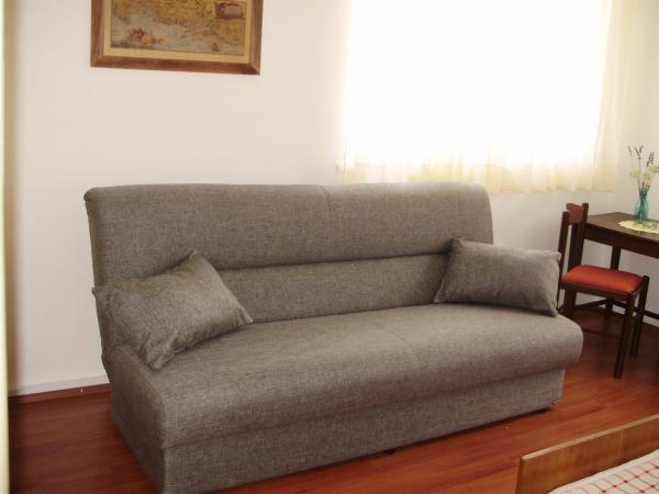 Útulné studio se nachází v klidné oblasti (hlavně), a není daleko od historického centra Splitu, jen čtyři minuty chůze od krásné písečné pláže. Byt se nachází v přízemí a skládá se z plně dopravovaného kuchyň (sporák, lednice, kuchyňského náčiní a nádobí) s jídelním stolem, ložnice se dvěma samostatnými lůžky, dvě velké skříně a pohodlnou pohovkou. Ještě ložnice mají WC a koupelnu se sprchou s teplou a studenou vodou. Nedaleko od apartmánů (5 minut chůze), tam jsou proslulé restaurace \\ \\ \\ \\ Boban Dvor a \\ \\ Pinpinella, kde si hosté mohou vychutnat vynikající jídlo a dalmatské speciality. Parkování je veřejné. Pro hosty, kteří preferují aktivní dovolenou, 3 minuty chůze od hotelu, tam jsou tenisové kurty, dětské hřiště košakarsko a pěší stezky podél pobřeží a pláží těšit na teplé letní večery. Na pláži Bačvice, která je součástí promenády, existuje celá řada restaurací. Historické centrum města a slavné Diokleciánův palác se dostanete pěšky pomalu asi dvacet minut.