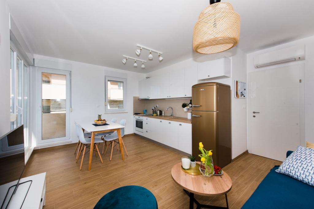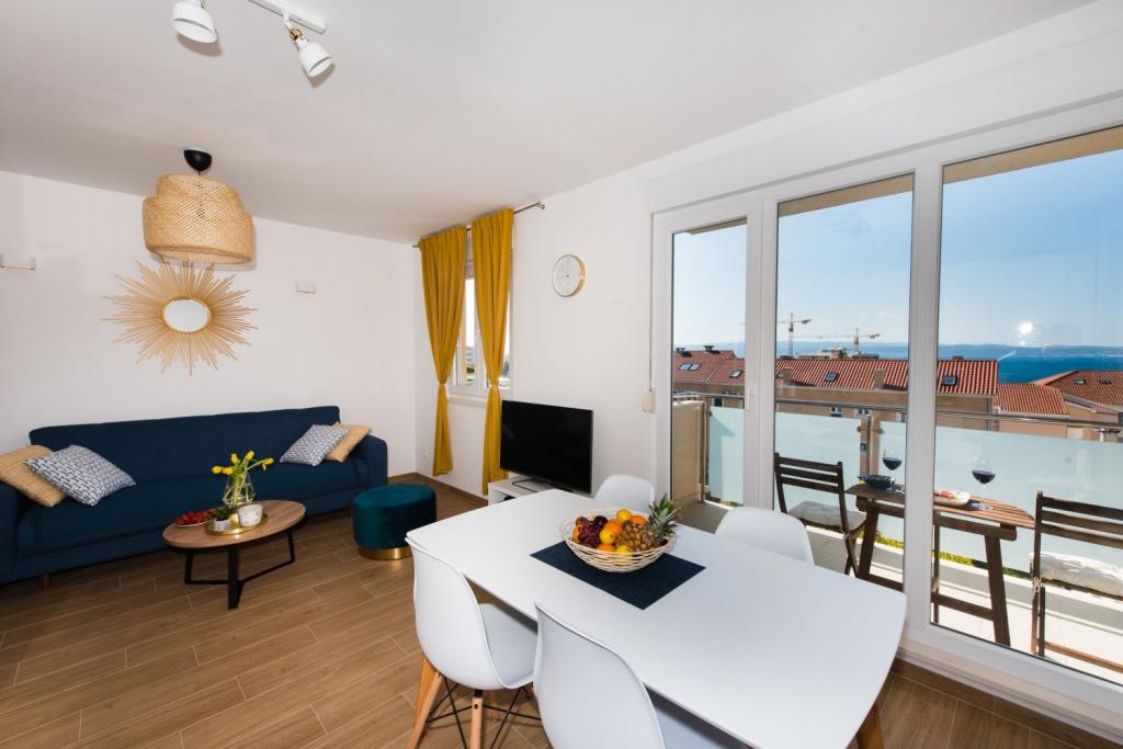 Nově zařízený byt (obývací pokoj se dvěma ložnicemi) s výhledem na moře, Žnjan-Split. Byt je plně vybaven. Byt má také krásný balkon s výhledem na moře. Před bytem je parkovací místo. Na pláž Žnjan dojdete pěšky za 10 minut. Na pláži je mnoho zařízení pro děti, kavárny atd. Do centra města trvá auto asi 7-8 minut. V bytě je vysokorychlostní internet a mnoho televizních programů, přes 100 programů.