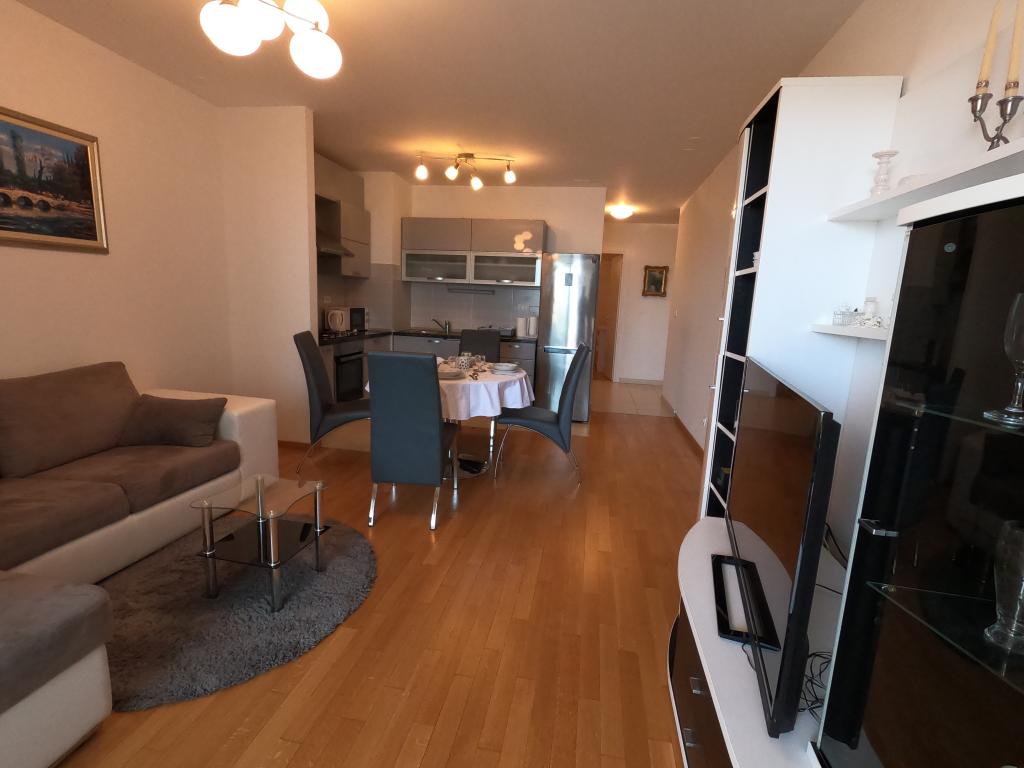 Plně a moderně vybavený apartmán se dvěma ložnicemi, kuchyní, vlastní koupelnou, jídelnou, obývacím pokojem a lodžií.