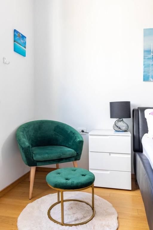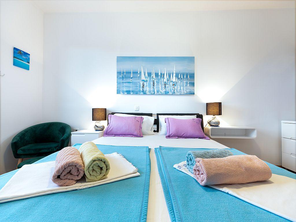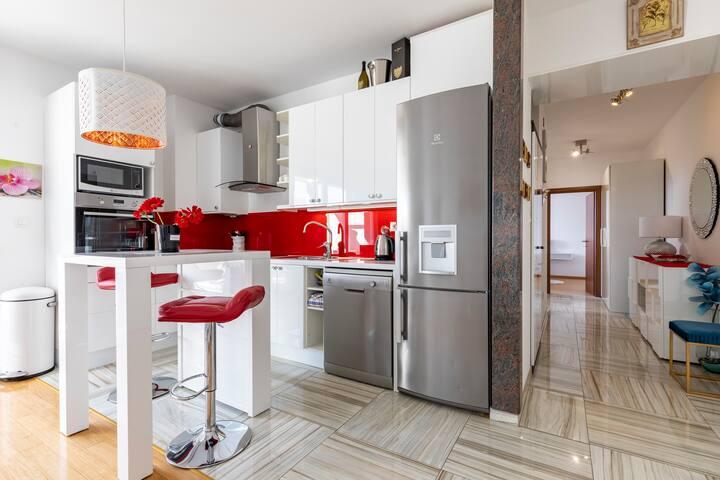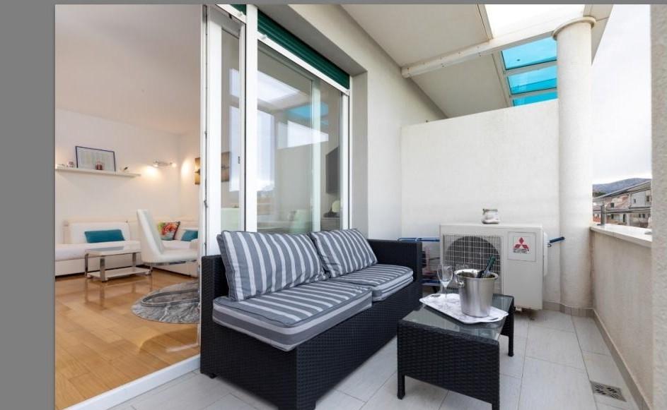 Tento krásný apartmán v centru Splitu má 70 m2, terasu, masážní vanu v koupelně a klimatizaci v každém pokoji. Moře je 50 m daleko. Toto jedinečné ubytování se nachází v blízkosti všech zajímavých míst, což usnadňuje plánování vaší návštěvy. Do centra města a starého Diokleciánova paláce dojdete za 5 minut. Máme soukromou garáž se 2 parkovacími místy a z garáže se do bytu dostanete výtahem. Byt se nachází ve 3. patře novostavby. Supermarket -300m, Restaurace - 100m, Kavárna - 50m, Výlety lodí -500m. Klíče od bytu a garáže jsou v trezoru na klíče v přízemí budovy. Kód k trezoru obdržíte e-mailem po provedení rezervace. Ještě máme poznámku: Před budovou se staví hotel. Hrubé betonářské práce byly dokončeny a přes den je možný občasný hluk.