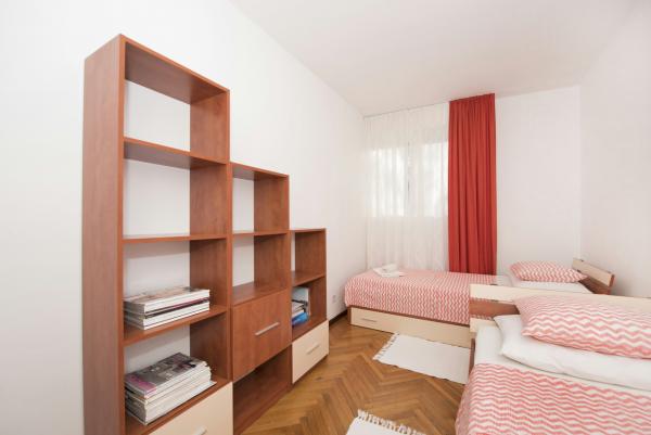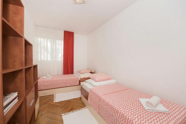Byt se nachází v klidné oblasti, plně zařízené a klimatizované. Skládá se ze dvou ložnic, kuchyně, jídelna a obývací pokoj a koupelna. Příjemná procházka 20 minut. dostat do centra města (nábřeží, západní pobřeží, Diokleciánův palác), na stadion Poljud, nákupních center (Mall of Splitu, centrum jeden) a krásné pláže Žnjan. V blízkosti hotelu se nachází kavárny, rychlé občerstvení, obchod s potravinami, lékárna, pošta, kasino ... Před a za domem je bezplatné parkování a několik autobusových zastávek. Apartmán Mario nabízí vřelé přivítání a příjemný pobyt.