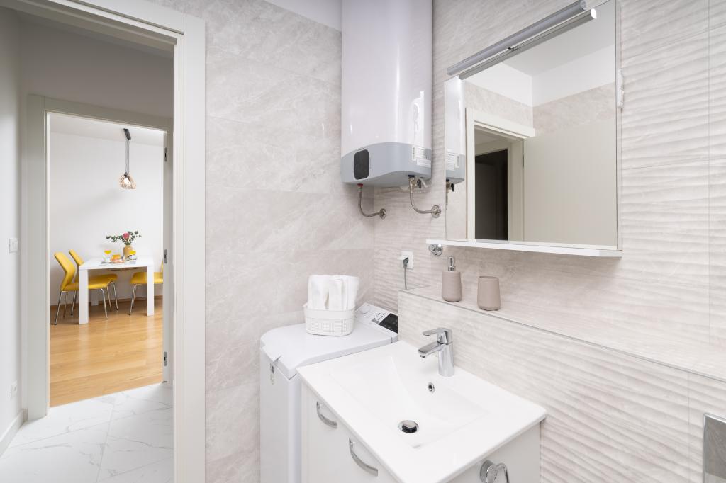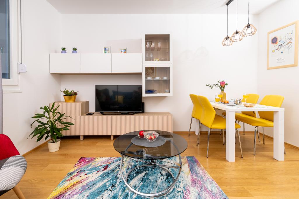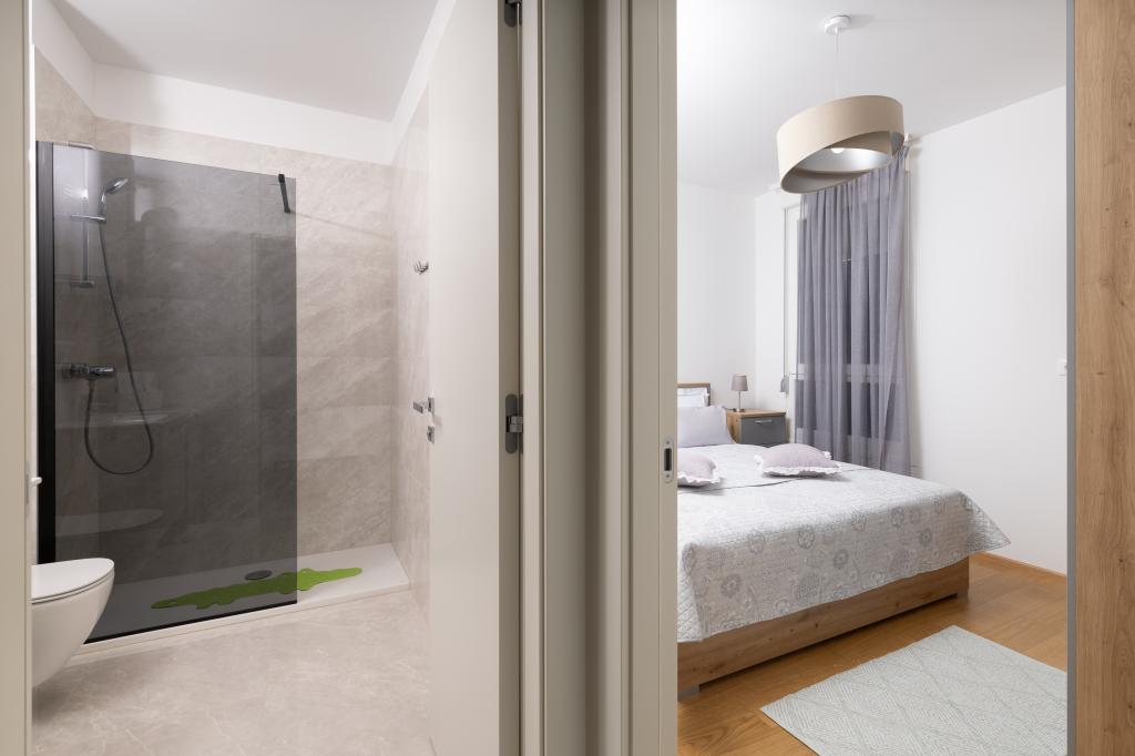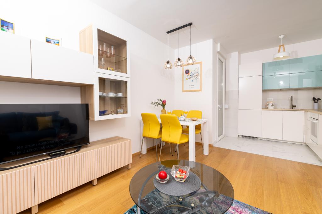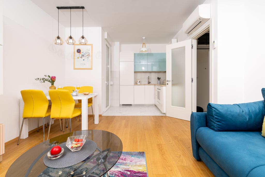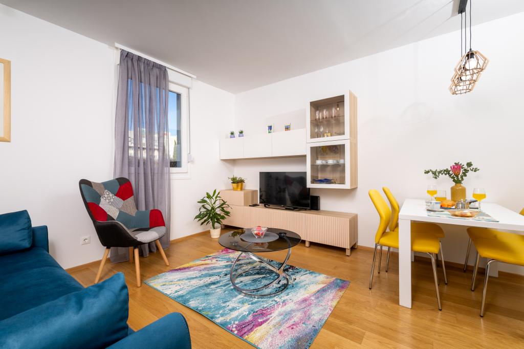 Plně a moderně vybavený apartmán v nové budově ve městě Split, Split - Střední Dalmácie. Budova se nachází v klidné části města (Trstenik), 300 metrů od moře a velké oblázkové pláže. Hostitelé v budově nebydlí. V bytě je bezplatné připojení k internetu. V okruhu do 1 km se nachází: obchod, trh, lékárna, lékařská pohotovost, bankomat, banka, noční klub, restaurace, kavárna. Centrum, autobusové nádraží, trajektový přístav jsou vzdáleny více než kilometr. V bytě je možné ubytovat 2+1 osoby. Lůžka jsou rozmístěna v ložnici a obývacím pokoji. Hosté si mohou vychutnat výhled na moře z vlastního balkonu. Hosté mohou po dohodě využívat garáž. Garáž se nachází v domě, s bytem je propojena výtahem.