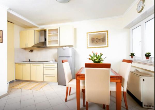 Pobytová taxa je v ceně.Byt se skládá ze vstupní haly, obývací pokoj, dvě ložnice, kuchyň, jídelna, koupelna a balkon. V bytě je klimatizované. Naši hosté mají k dispozici je také vybavená kuchyň (lednice, sporák, digestoř, mixér, příbory a nádobí), pračka, kabelová TV, bezplatné připojení na internet (WiFi), čisté ložní prádlo, ručníky a fén složkou jsou součástí naší nabídky. Naši hosté jistě potěší příjemné a dobře vybavený obývací pokoj. Velkou výhodou našich bytů jsou dvě samostatné ložnice s manželskou postelí.