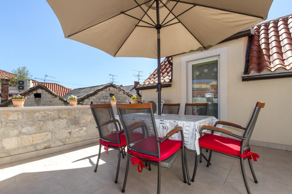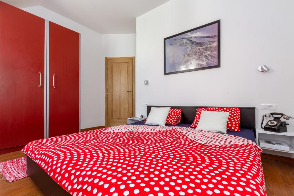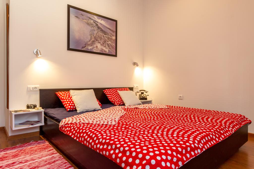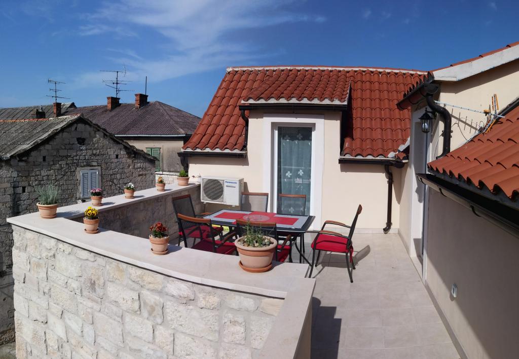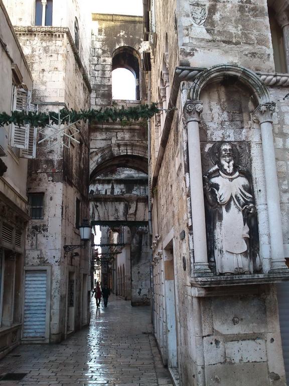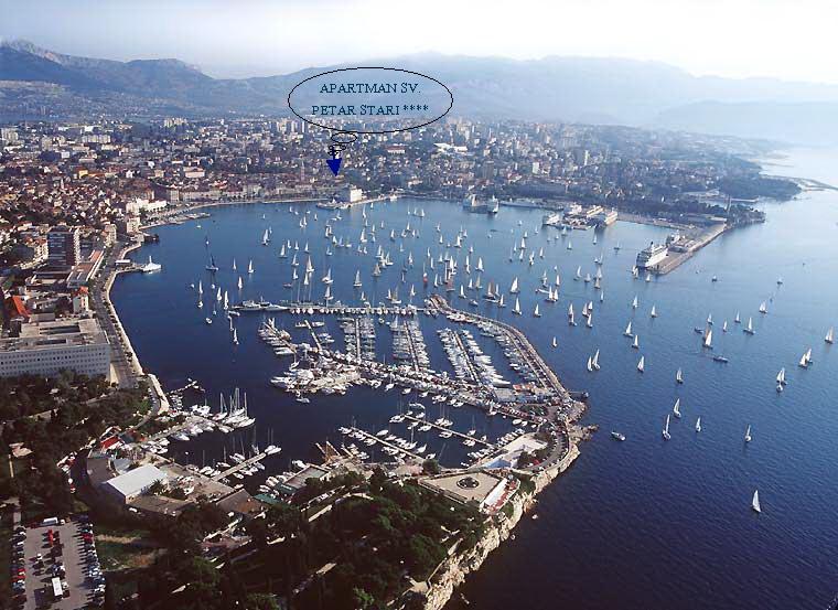 Apartmán 74 m² v samém centru Splitu, v bezprostřední blízkosti všech historických památek a společenských akcí, muzeí, galerií, městských pláží, dětských hřišť, supermarketů, trhů, restaurací, kaváren, cestovních kanceláří, obchodů se suvenýry...atd. To vše je v okruhu 5 až 300 metrů od bytu. Nachází se ve 2. (posledním) patře starého zrekonstruovaného domu s velkou slunnou střešní terasou chráněnou před pohledy sousedů, 2 ložnicemi - jedna pro dvě osoby (manželská postel 2x1,80m) a druhým pokojem pro jednu osobu (postel 2x0,80m) a skříně na oblečení. V apartmánu je také dobře vybavená kuchyň se vším, co potřebujete k přípravě různých pokrmů. Dále je zde obývací pokoj s jídelnou a prostorná koupelna. Dům, ve kterém se byt nachází, byl postaven před více než 500 lety. V dávných dobách to byl kostel sv. Petra, který byl desakralizován v 18. století. Proto se tento apartmán nazývá Apartmán Sv. Petr Starý.
