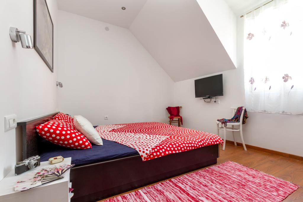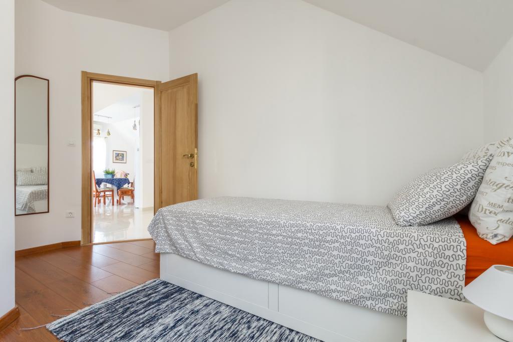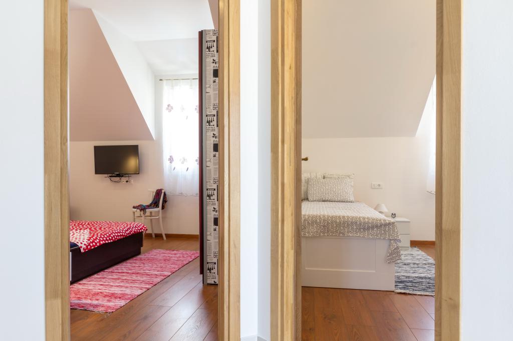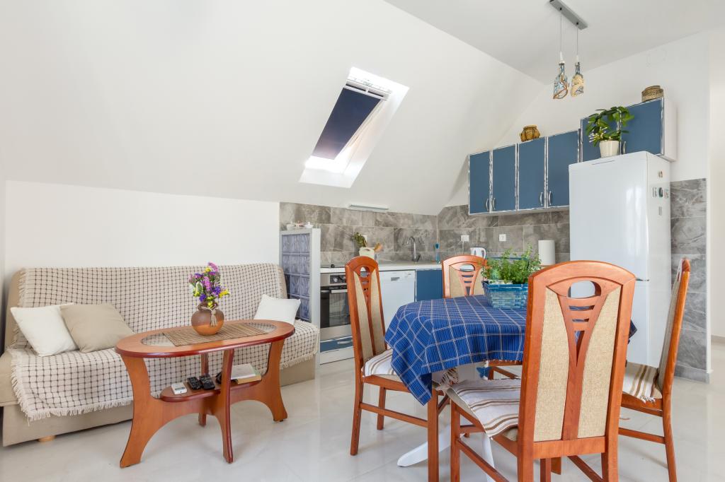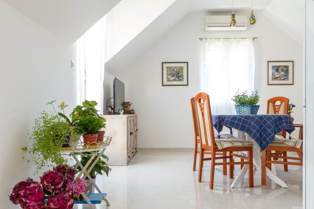 Apartmán 74 m² v samém centru Splitu, v bezprostřední blízkosti všech historických památek a společenských akcí, muzeí, galerií, městských pláží, dětských hřišť, supermarketů, trhů, restaurací, kaváren, cestovních kanceláří, obchodů se suvenýry...atd. To vše je v okruhu 5 až 300 metrů od bytu. Nachází se ve 2. (posledním) patře starého zrekonstruovaného domu s velkou slunnou střešní terasou chráněnou před pohledy sousedů, 2 ložnicemi - jedna pro dvě osoby (manželská postel 2x1,80m) a druhým pokojem pro jednu osobu (postel 2x0,80m) a skříně na oblečení. V apartmánu je také dobře vybavená kuchyň se vším, co potřebujete k přípravě různých pokrmů. Dále je zde obývací pokoj s jídelnou a prostorná koupelna. Dům, ve kterém se byt nachází, byl postaven před více než 500 lety. V dávných dobách to byl kostel sv. Petra, který byl desakralizován v 18. století. Proto se tento apartmán nazývá Apartmán Sv. Petr Starý.