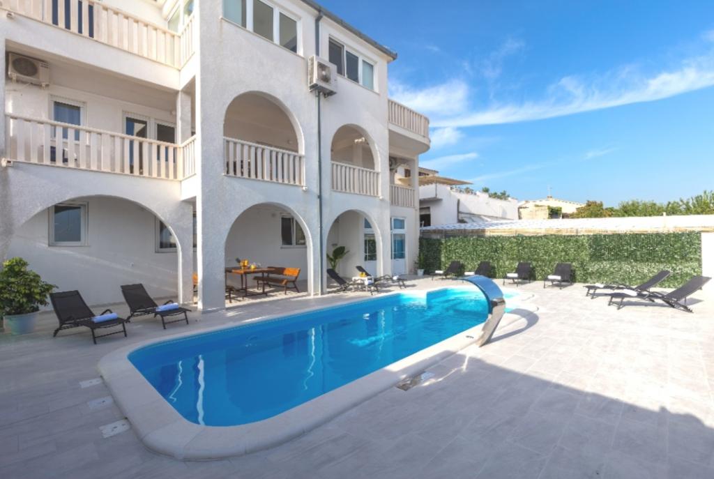 Vila se nachází v klidné oblasti, 7 minut chůze od pláže a 3 km od centra. Vila má bazén, vířivku a saunu. Od 15.06. K dispozici bude mini tělocvična, kulečník a stolní tenis.
