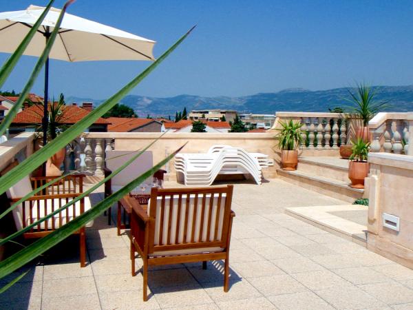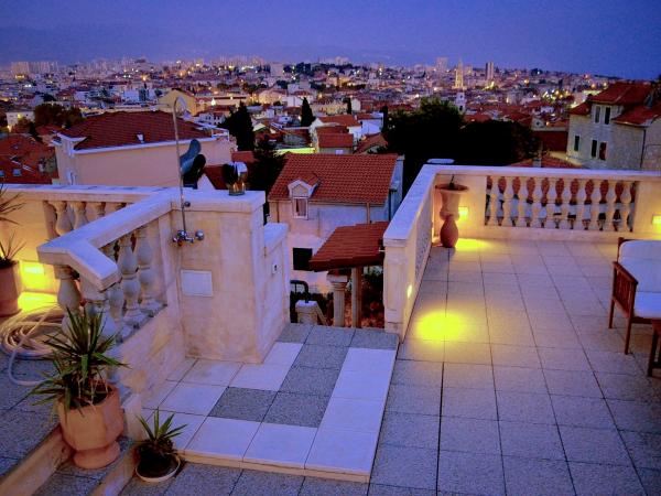 Great mezonetový podkrovní byt ve druhém patře vily, 10 minut chůze od všech zajímavých turistických atrakcí Splitu. Skládá se ze 3 ložnice, 3 koupelny (en-suite), obývací pokoj, jídelna, plně vybavená kuchyň, místnost s pračkou a sušička, dva balkony, velká střešní terasa s 360 ° výhledem na město, moře a na okolní hory. K dispozici je také bezplatné parkování (na vyžádání) BOOK 7 nocí a zaplatit za 6