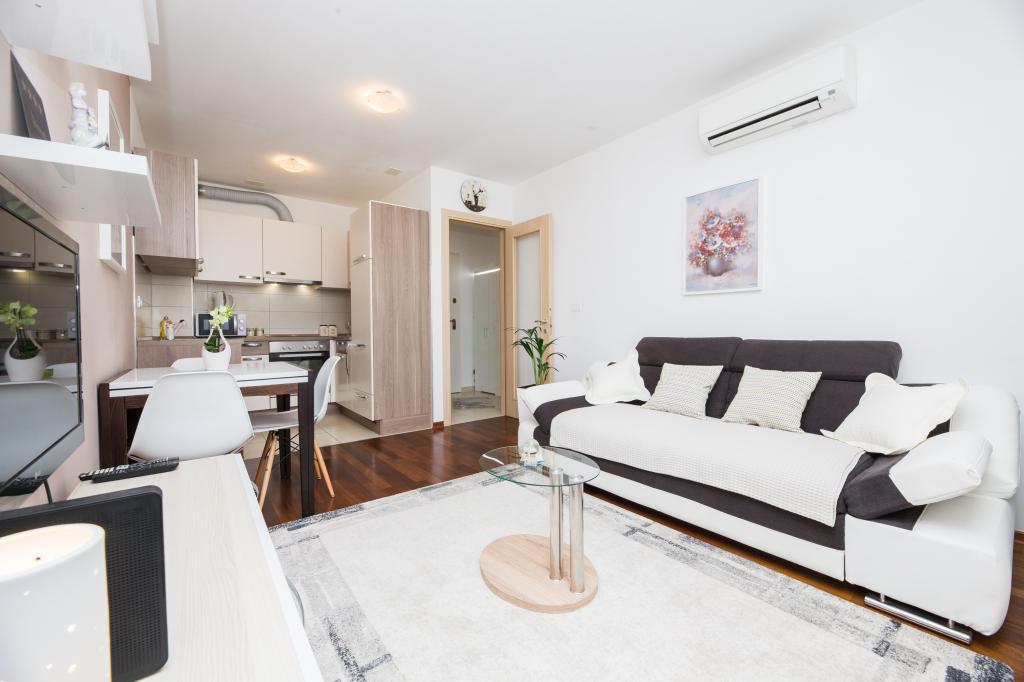 Byt se nachází v obytném domě ve 2. patře Stonska br 5 Žnjan Split. Plně zařízený a pěkně vybavený. V pěší vzdálenosti od pláže je to 7 až 8 minut. Budova se nachází v krásném a klidném prostředí.