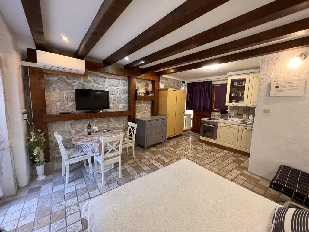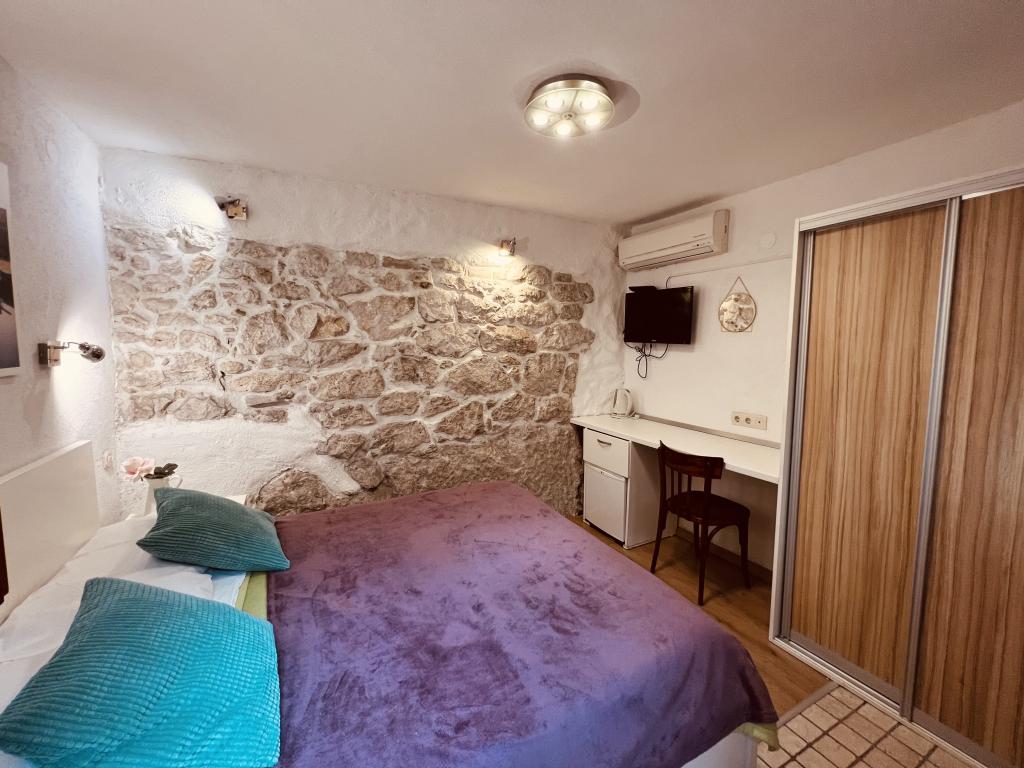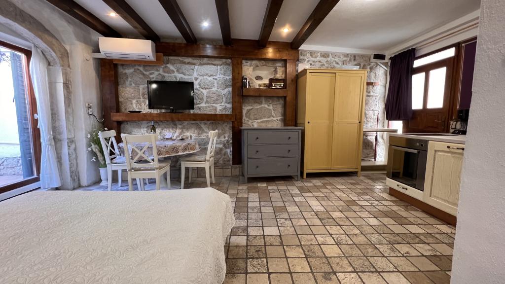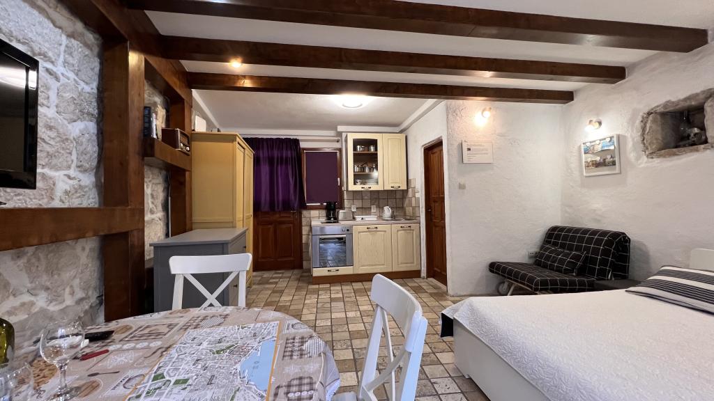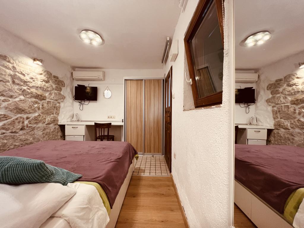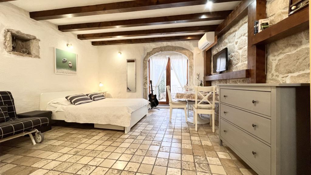 GUARDIAN si vybral STUDIO: Jeden z 10 nejlepších evropských hotelů a další ubytování, které si dovolená opravdu užívá: Studiové apartmány jsou ve starém domě, nedávno vyzdobeném ve staré části města, v klidné ulici. Ideální pro vaši dovolenou v centru města a potěšení a čistou dalmatskou atmosféru. Studiové apartmány mají manželskou postel, přistýlku, kuchyň, sprchu, TV, klimatizaci, rádio s CD, vysoušeč vlasů, internet zdarma, veřejné parkoviště zdarma... Díky své výhodné poloze nebudete během pobytu potřebovat auto ve Splitu. Vše pro relaxační pobyt po ruce v centru města, nábřeží, kopec Marjan, četné pláže, obchody, trajektové přístavy, autobusové nádraží, to vše lze dosáhnout pěšky, v mírném středomořském vzduchu. Centrum města je vzdáleno 100 m. Ve dvoře je možné využít ohniště.