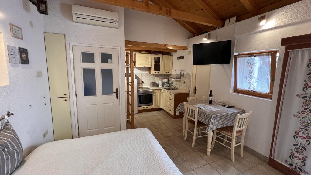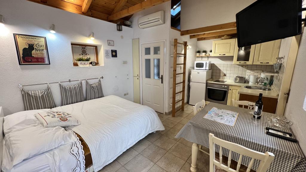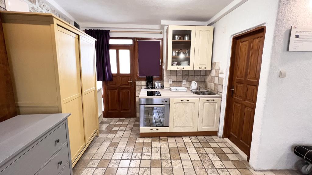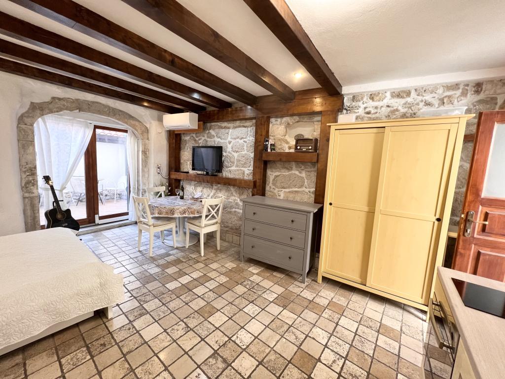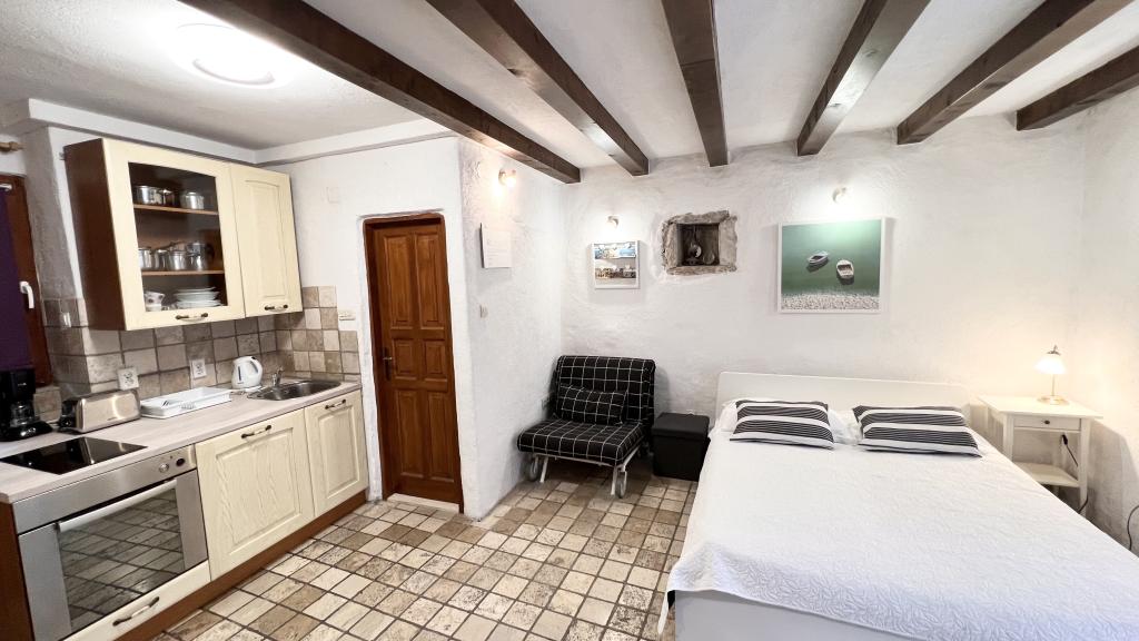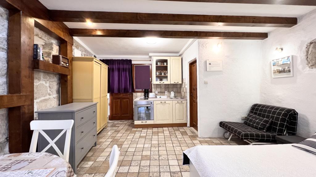 GUARDIAN si vybral STUDIO: Jeden z 10 nejlepších evropských hotelů a další ubytování, které si dovolená opravdu užívá: Studiové apartmány jsou ve starém domě, nedávno vyzdobeném ve staré části města, v klidné ulici. Ideální pro vaši dovolenou v centru města a potěšení a čistou dalmatskou atmosféru. Studiové apartmány mají manželskou postel, přistýlku, kuchyň, sprchu, TV, klimatizaci, rádio s CD, vysoušeč vlasů, internet zdarma, veřejné parkoviště zdarma... Díky své výhodné poloze nebudete během pobytu potřebovat auto ve Splitu. Vše pro relaxační pobyt po ruce v centru města, nábřeží, kopec Marjan, četné pláže, obchody, trajektové přístavy, autobusové nádraží, to vše lze dosáhnout pěšky, v mírném středomořském vzduchu. Centrum města je vzdáleno 100 m. Ve dvoře je možné využít ohniště.