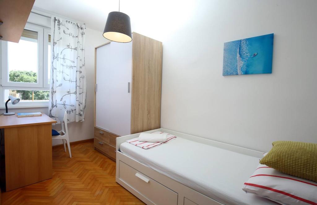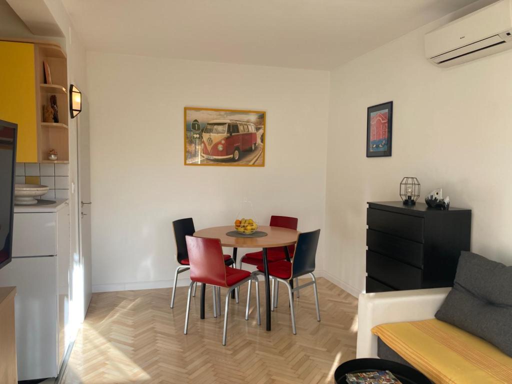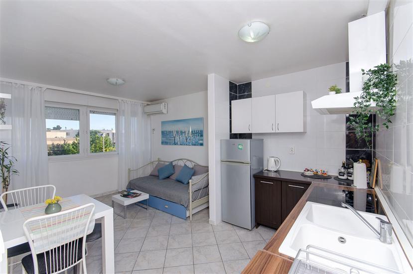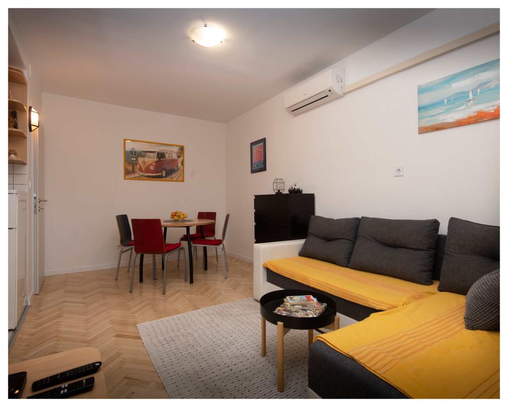 Odpočiňte si s celou rodinou v tomto klidném místě k pobytu. První apartmán je moderní, plně zařízený dvoupokojový apartmán v blízkosti centra, se slunným balkonem. Nachází se ve velmi pěkné a centrální části Splitu, pouhých 10-15 minut chůze od Starého Města a Diokleciánova paláce. Je to ideální místo pro ty, kteří kombinují práci na dálku s dovolenou: super rychlý a spolehlivý internet, chytrá televize, pracovní prostor, klimatizace, myčka nádobí, pračka, bezplatné veřejné parkování v blízkosti apartmánu. Je ideální pro 3 osoby. Druhý apartmán se nachází nedaleko, 5 minut chůze, a skládá se z jedné ložnice, obývacího pokoje s kuchyní a koupelny. Je ideální pro dvě osoby, třetí osoba může spát na pohovce v obývacím pokoji. Má Wi-Fi, pračku, klimatizaci a bezplatné veřejné parkování v okolí budovy.