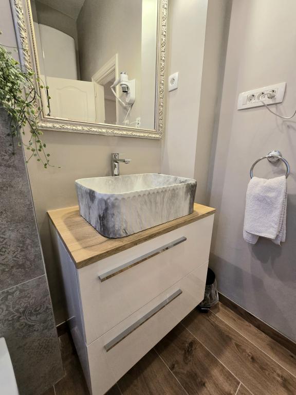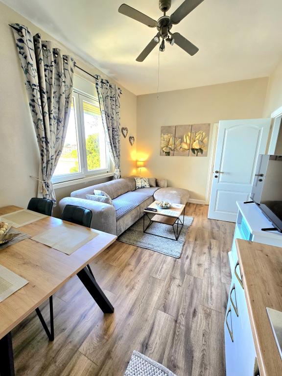 Lokalita výborná, ubytování funkční pro 3 osoby, hostitelka velmi přátelská, čistota ok, moře u dveří...doporučuji zejména pro pobyt s domácím mazlíčkem...nepotřebujete auto když jste tady a měli jsme soukromé parkoviště (zlato ve Splitu stojí za to)... byli jsme zpátky a já se vrátím