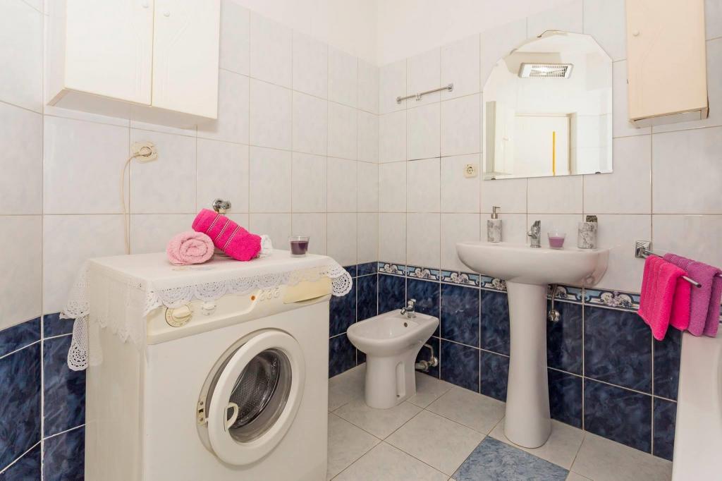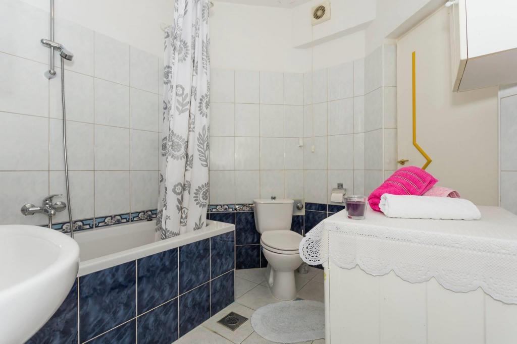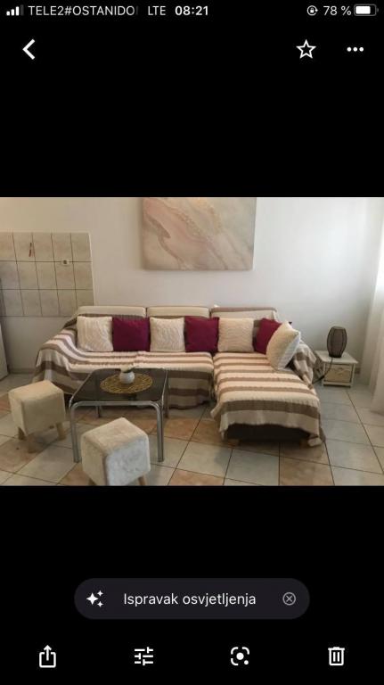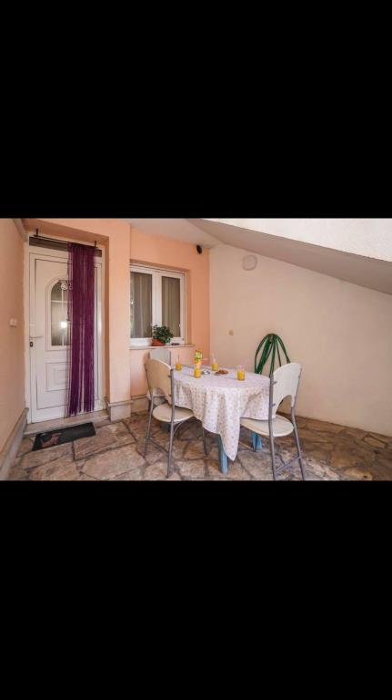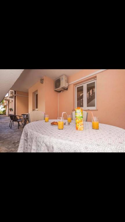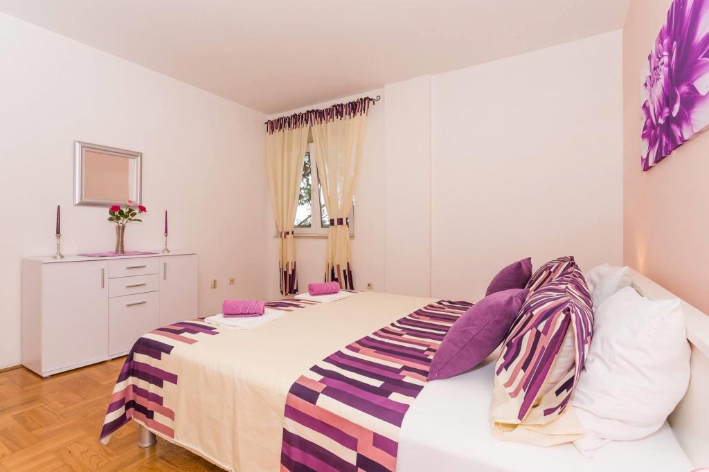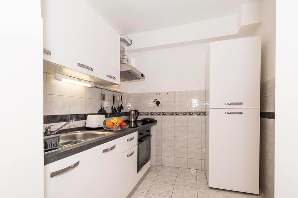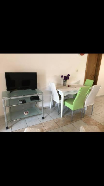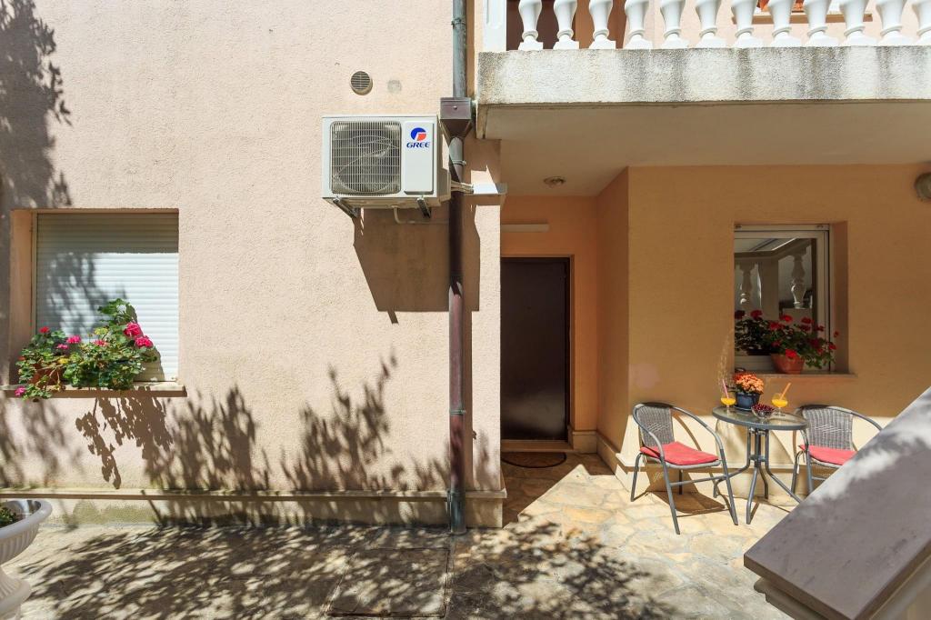 Byt se nachází v první řadě u moře v nové budově. V bytě jsou dvě velké ložnice s manželskou postelí, dvě toalety, kuchyň, jídelna, obývací pokoj a terasa. Byt se nachází 200m od první oblázkové pláže a 300m od písečné pláže. Vzdálenost k první kavárně a restauraci je menší než 100m, kavárna Renato, tenisový bar a Mythos, restaurace Velo Misto a Barkarola. Vzdálenost do centra města je asi 20 minut pěšky. Ve vzdálenosti 100 metrů jsou k dispozici tenisové kurty.
