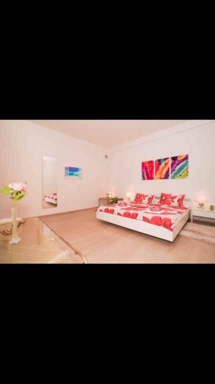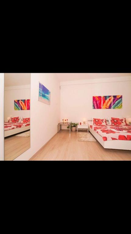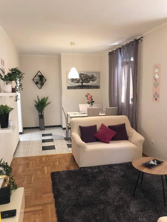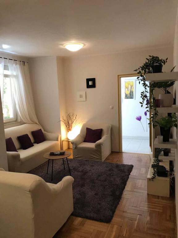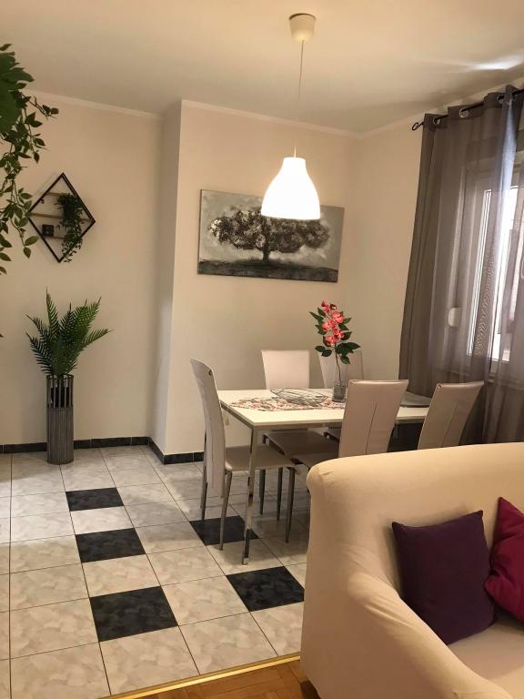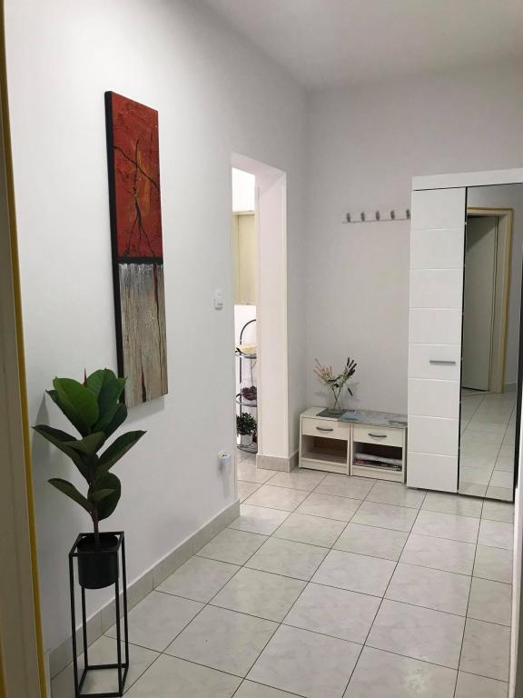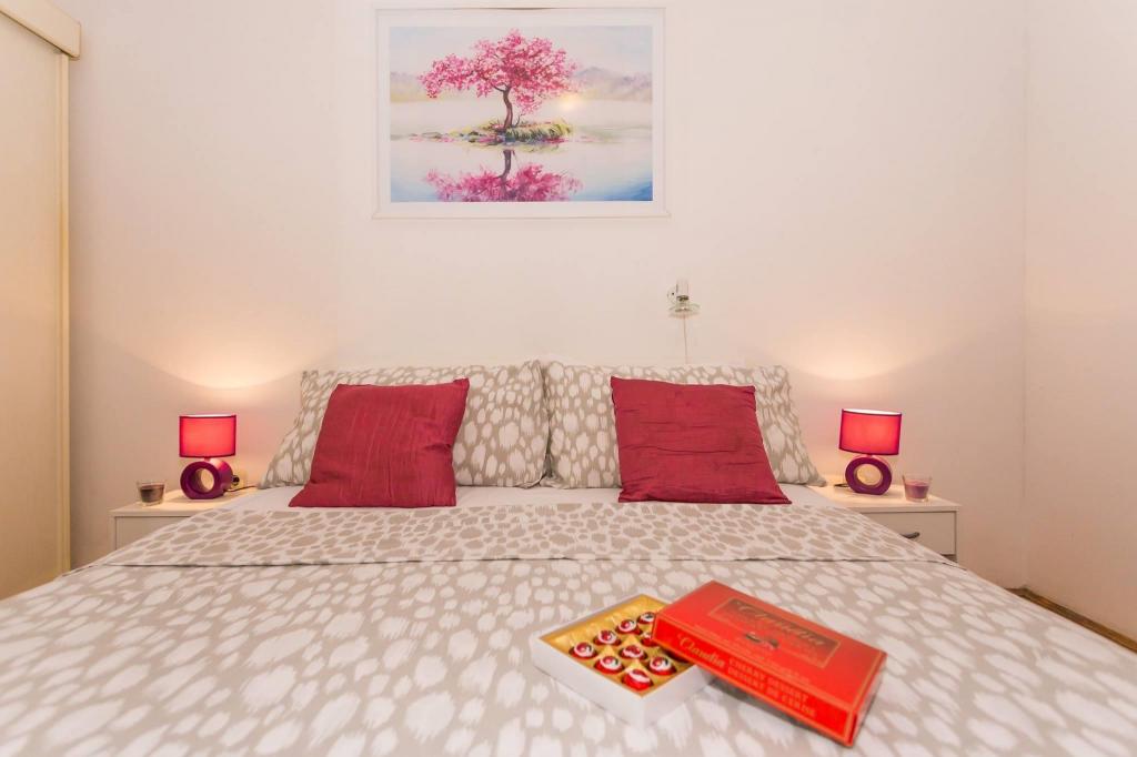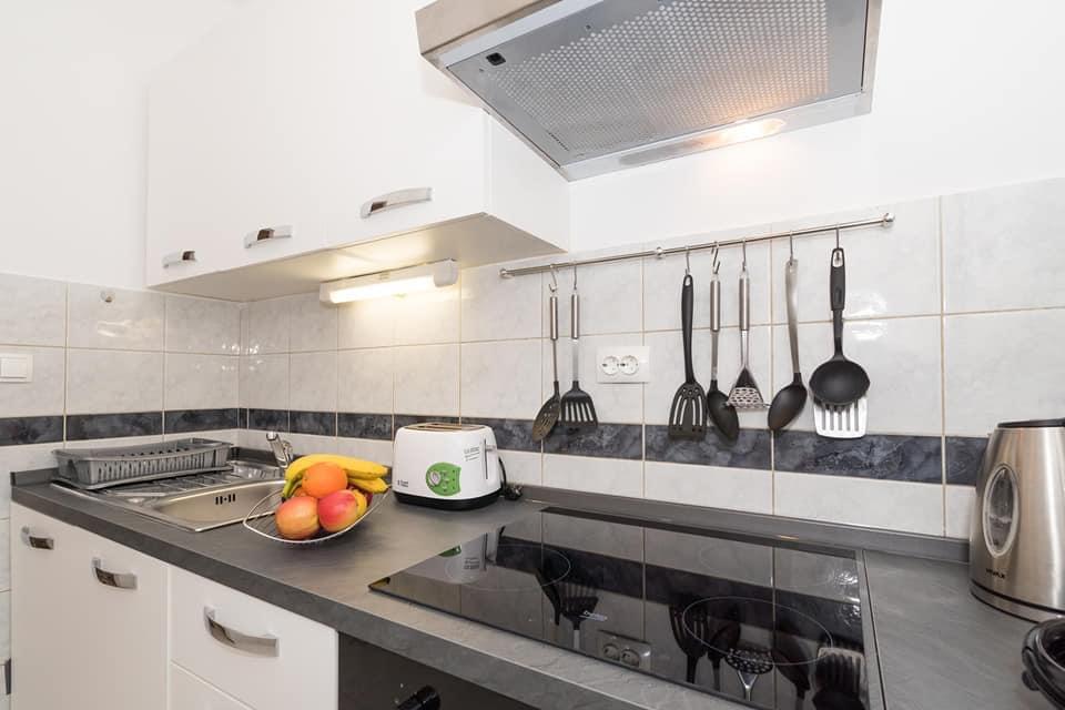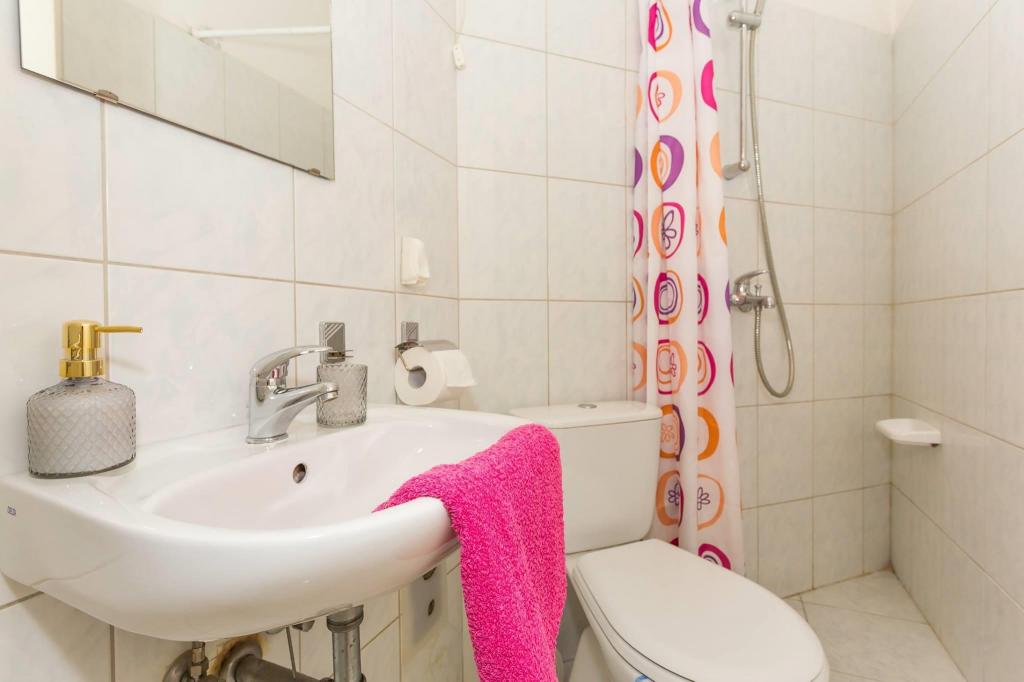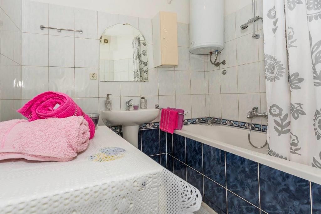 Byt se nachází v první řadě u moře v nové budově. V bytě jsou dvě velké ložnice s manželskou postelí, dvě toalety, kuchyň, jídelna, obývací pokoj a terasa. Byt se nachází 200m od první oblázkové pláže a 300m od písečné pláže. Vzdálenost k první kavárně a restauraci je menší než 100m, kavárna Renato, tenisový bar a Mythos, restaurace Velo Misto a Barkarola. Vzdálenost do centra města je asi 20 minut pěšky. Ve vzdálenosti 100 metrů jsou k dispozici tenisové kurty.