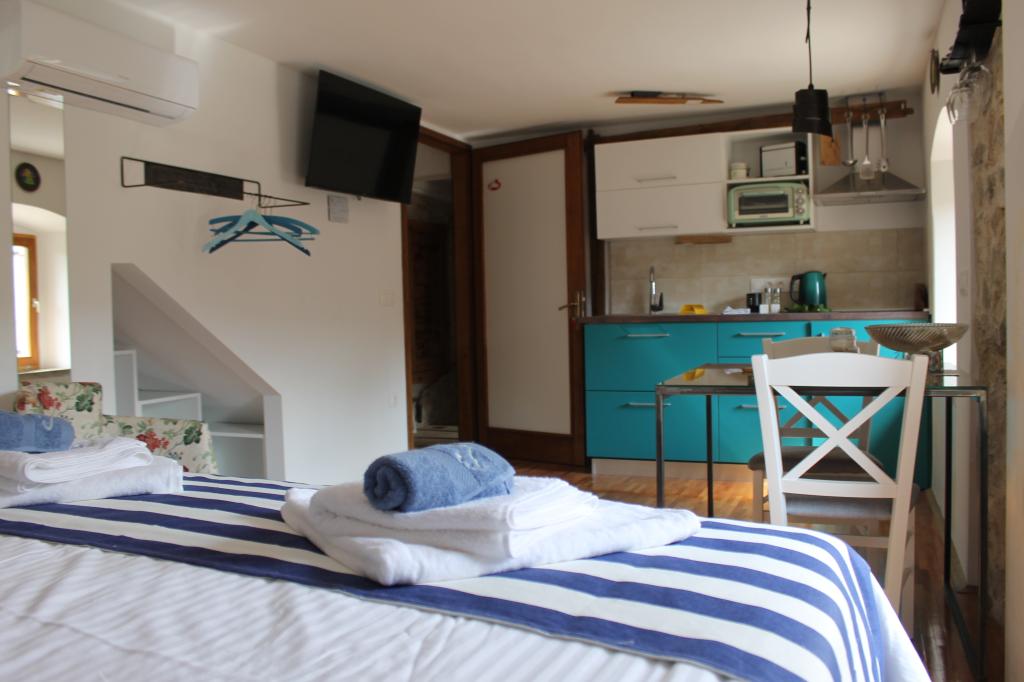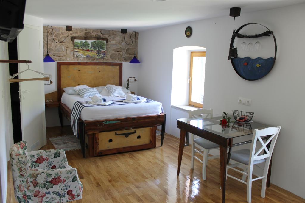 V srdci staré části malé rybářské vesnice vám nově zrekonstruovaný, sto let starý kamenný dům nabídne odpočinek v klidu a relaxaci. Tradiční kamenná stavba, zrenovovaná tak, že dnes vypadá pevně zakořeněná na svém místě, vám umožní strávit příjemné noci i v teplém letním období. Začněte den na terase apartmánu Sova, s vůní vavřínů, jejichž les vás obklopuje, a svěžestí pelješanského vánku, který každý den změkčuje horko letního dne, protože jste „na Brigu“ někde mezi nebem a moře. Protože se nacházíte v Sreseru, městečku s výraznými písečnými, oblázkovými a skalnatými plážemi, které nedávno zdobí neobvyklý výhled na nádherný most Pelješki. Apartmány Sova jsou 900 metrů od těchto pláží a modrého moře. Nedaleko je odlehlá, romantická zátoka s křišťálově čistým mořem jen pro vás. Dostanete se k nám asi za 10 minut autem od nově postaveného mostu Pelješko. Také nově vybudovaná rychlostní silnice vám umožní snadno se vydat k přírodním perlám ostrovů Mljet a Korčula, stejně jako k nejstarší aktivní solné pánvi na světě a ke slavným hradbám Stonu a v Dubrovníku jste asi za 50 minut jízdy. O výhodách pelješských vín a malostonských měkkýšů není třeba mluvit, stačí je ochutnat, což je možné v bezprostřední blízkosti za přijatelné ceny, a zakončit den v jednoduchém a pohodlném ubytování apartmánu Sova, v starý kamenný dům vybavený vším, co moderní host potřebuje, kde tradice žije dodnes.