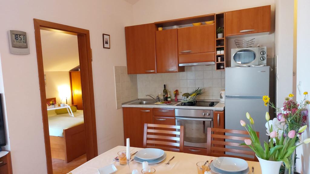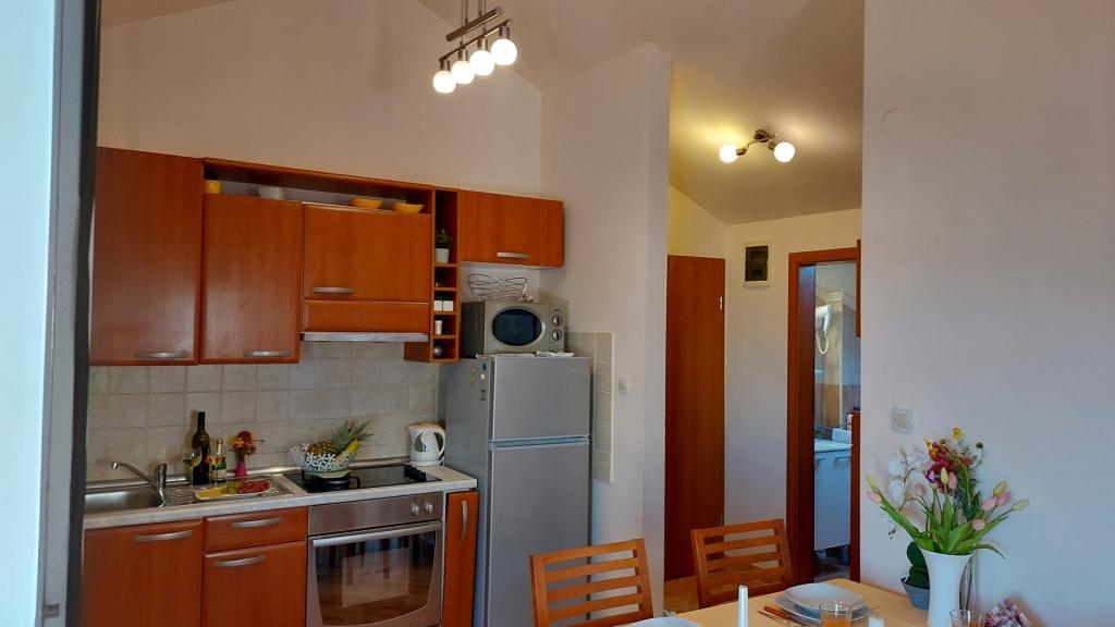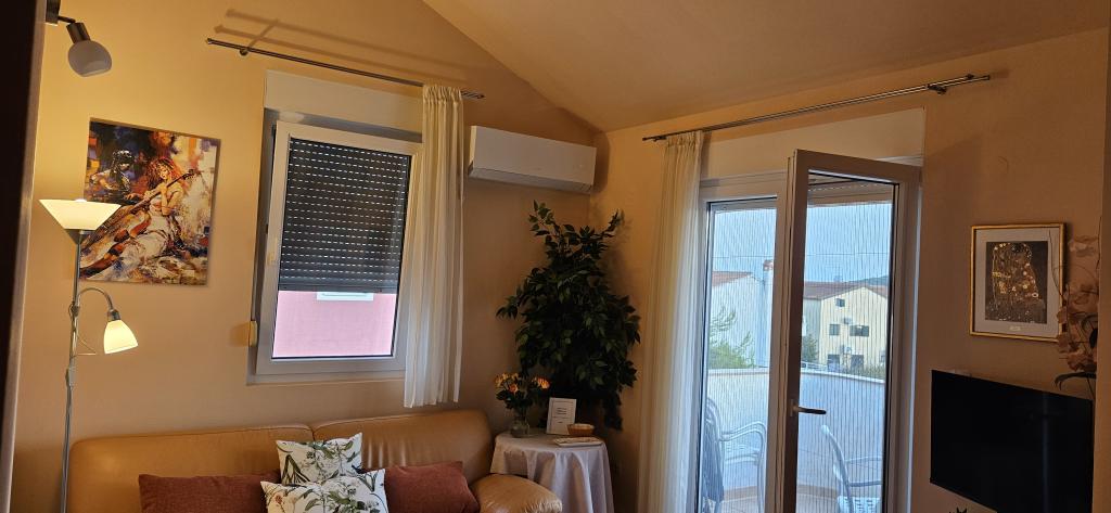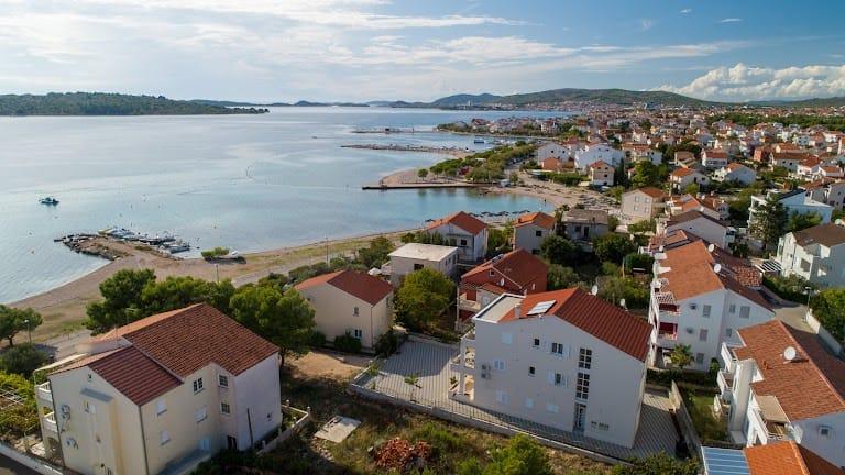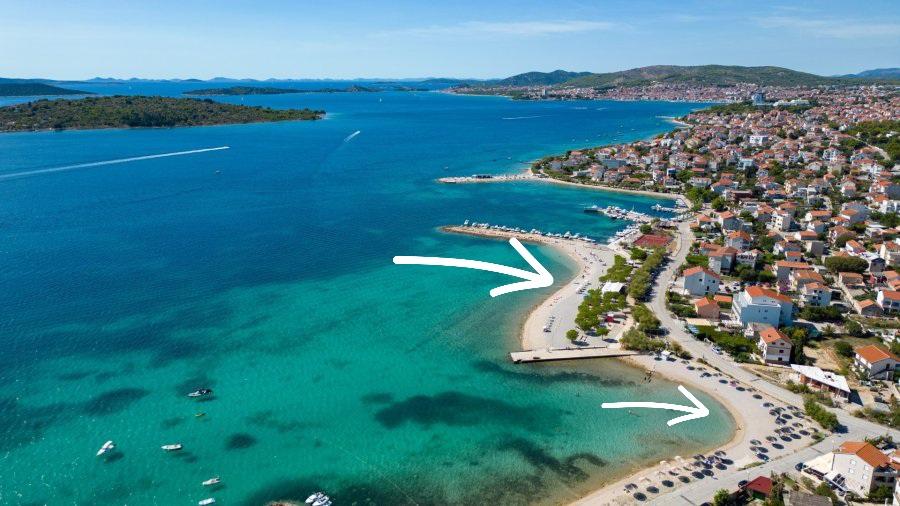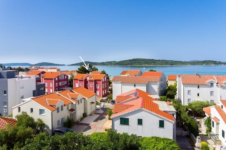 Nový a moderní byt na klidném místě ve Srimě u Vodice s výhledem na moře. Krásně upravená pláž je cca. 100 metrů. Zařízení se nachází cca. 200 metrů od centra obce a 25 minut pěšky (po promenádě) do města Vodice.