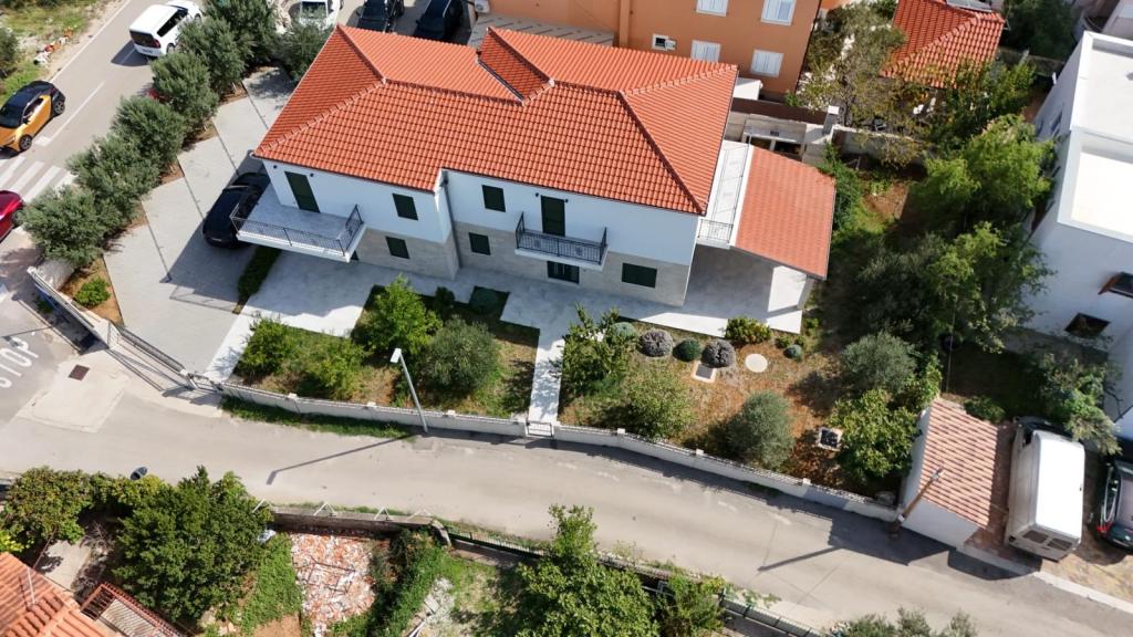 Moderní apartmány na klidném místě Srima se nachází 200 m od moře. Po ulici se dostanete do centra, kde je velká oblázková pláž, promenáda podél moře, která vede do Vodice, obchody, kavárny, park, dětské hřiště a další zařízení. Dva apartmány stejné velikosti se skládají ze dvou ložnic, kuchyně, koupelny, obývacího pokoje a velké terasy v přízemí a balkonu v 1. patře. Ke každému bytu náleží hlídané parkovací místo v oploceném dvoře. Prostorné, uklizené a nové prostředí domu vám poskytne pocit pohodlí. Spojení s ostrovy (loď taxi), blízkost tří národních parků a kulturní centrum Šibeniku jsou další atrakce, které doplní zážitek z tohoto krásného živého malého místa, které vám zůstane v paměti.