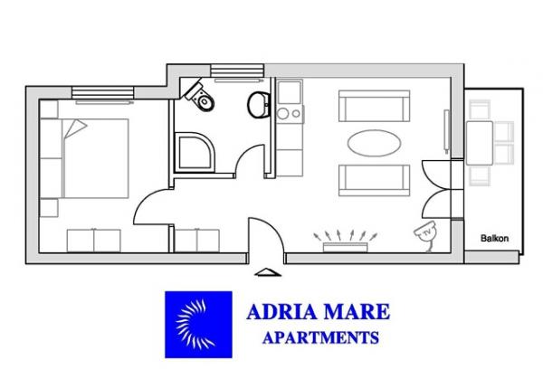 Studio apartmán pro dvě osoby s jednou přistýlkou (27 m2)