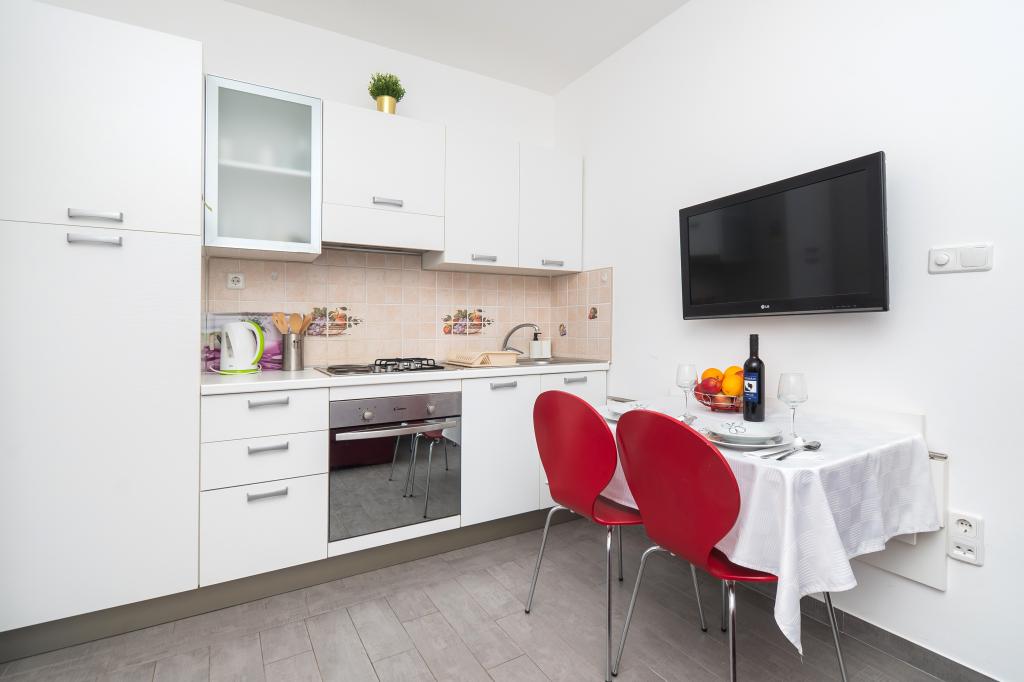 Apartmán je krásný, čistý, moderně vybavený. Majitel velmi ochotný. Určitě se budeme rádi vracet. Kolem moře je pěkná procházka do centra Vodice, kde to žije. Jinak v místě ubytování klid a pohoda, blízko moře, mělké s pískem vhodné pro malé děti. Autem 15 minut do Šibeniku na větší nákup.