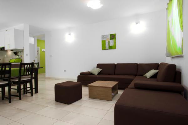 čistý, prostorný, příjemný apartmán, kompletně zařízený, velmi vhodný pro rodiny s dětmi, milý a vstřícný přístup domácích, nedaleko pláže.
