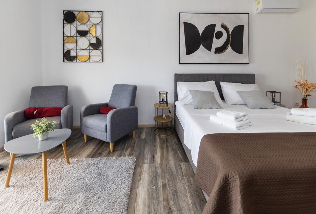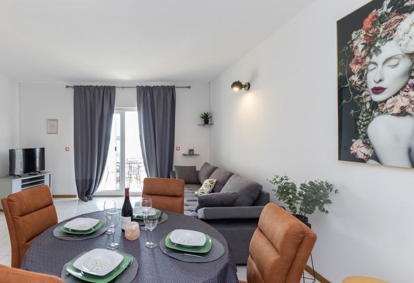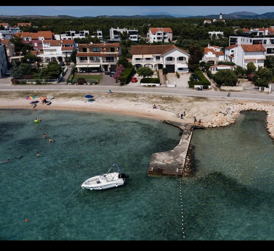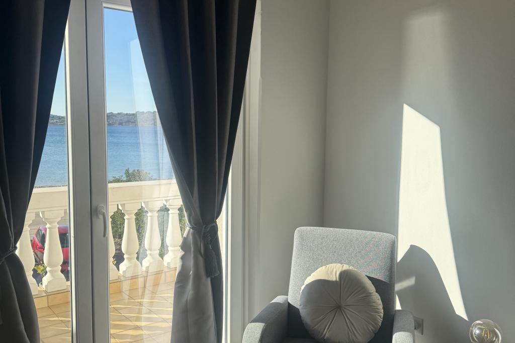Přímo u moře, ve Srimě, v prvním patře rodinného domu, jsou k pronájmu moderní apartmány. Kvalitní inventář, klimatizace, vybavení obecně, uspokojí hosty, kteří chtějí víc. Kombinací apartmánů mohou komfortní dvoulůžkové a třílůžkové pokoje ubytovat skupinu turistů, zatímco páry, které takový komfort nepotřebují, si hostitelé pronajímají pouze pokoj s balkonem a připojeným WC. K pocitu bezpečí a relaxace přispěje i pozdní výhled na moře.