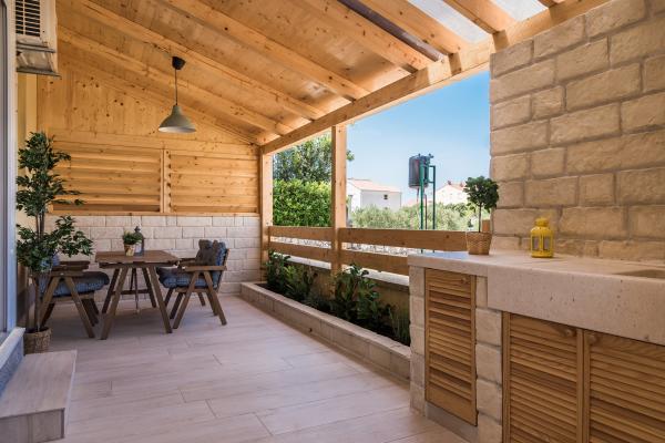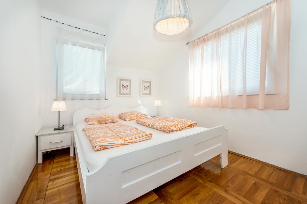 Moderně vybavené apartmány ve Srimě u Vodice, 100 m od krásně upravené pláže, oceněné Modrou vlajkou. Objekt se nachází 100 m od centra města a 20 minut chůze po přímořské promenádě do Vodice. Apartmán Karla se nachází v přízemí a má velkou terasu a zahradu o rozloze 80 m2. V zahradě se nachází nová letní kuchyně s grilem. Apartmán má dvě ložnice, obývací pokoj, koupelnu, kuchyň, lodžii a terasu. Kuchyně je vybavena všemi moderními domácími spotřebiči. Apartmány Mara, Ana a Ivan se nacházejí v prvním patře objektu o rozloze 50 m2-55 m2. Jsou zařízeny novým nábytkem v shabby chick stylu a jsou mimořádně pohodlné k pobytu. Skládají se ze dvou ložnic, koupelny, chodby, obývacího pokoje, kuchyně a lodžie. Kuchyně jsou vybaveny nejmodernějšími spotřebiči a potřebným nádobím a náčiním. Apartmán Jo the Star (35 m2); v přízemí má terasu o rozloze 30 m2 s grilem a zahradním nábytkem.