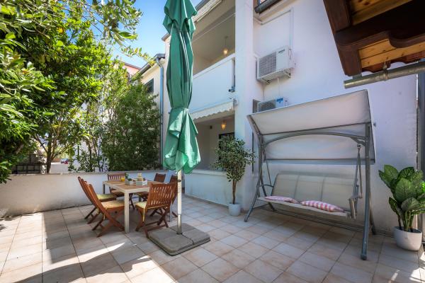 Přízemní byt s velkou terasou je nejkrásnější, jaký jsme kdy navštívili. Velká, oplocená terasa, v blízkosti pláže, parkování, vše nové, vše vybavené. Nádhera, jedním slovem. Již jsme zaplatili za příští rok. Chvála !!!