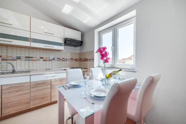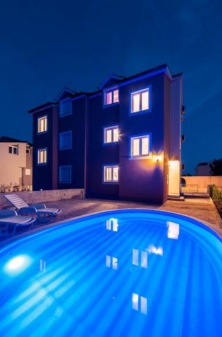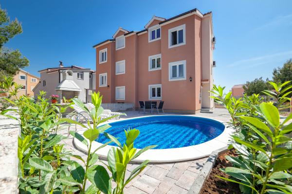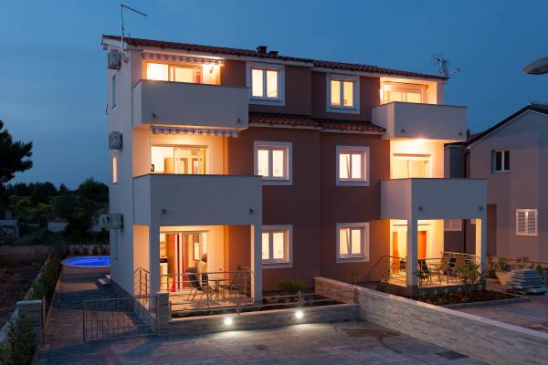 Katarina Apartmány se nacházejí v rodinném domě, v klidné části Srima. Zařízení je zcela nový zařízený moderním nábytkem. Je to jen 100 metrů od moře a krásné pláže. Všechny apartmány mají výhled na moře. K dispozici je venkovní bazén a gril s verandou se stolem a židlemi. Apartmány jsou vybaveny klimatizací, satelitní TV, velkou LCD TV.