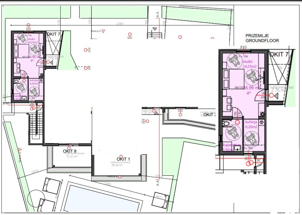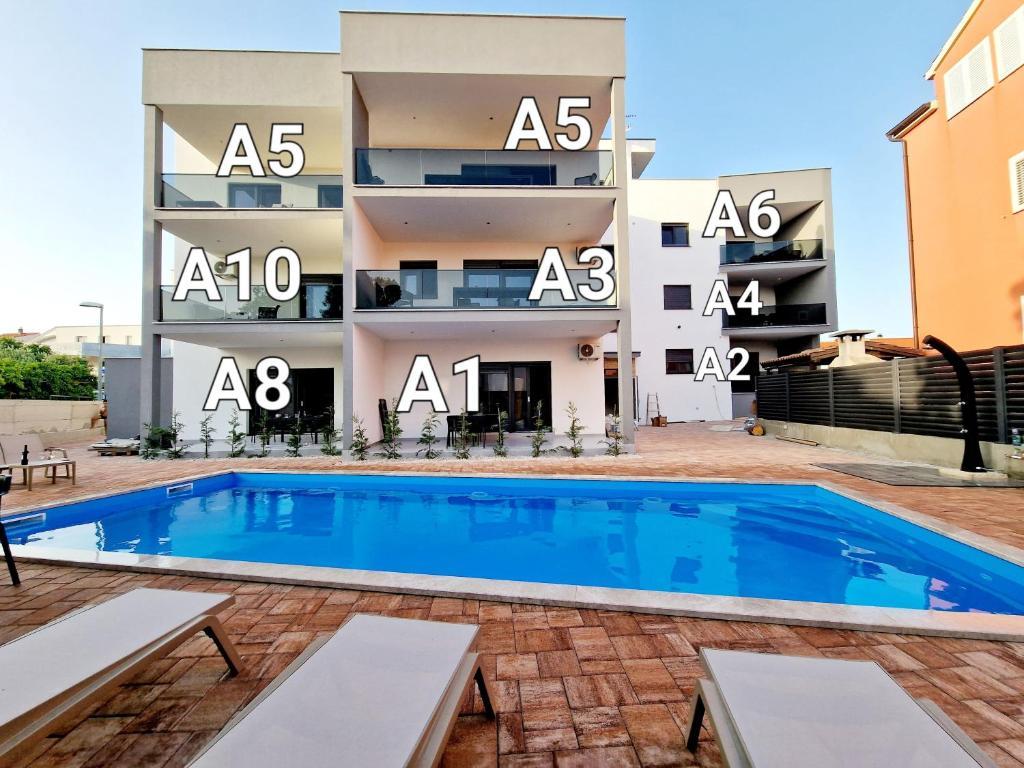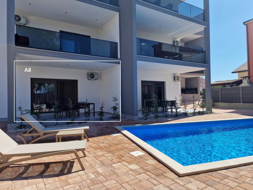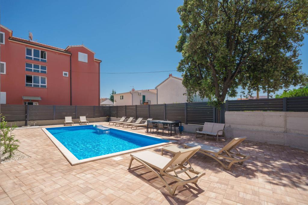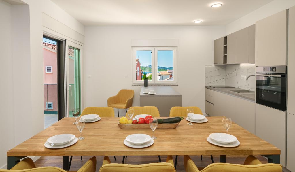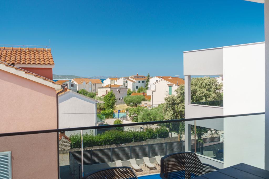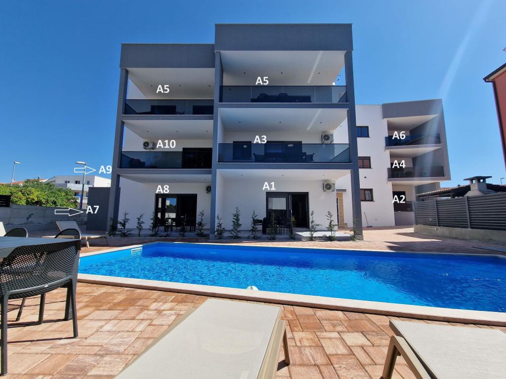 Apartvilla OKIT je nově postavený dům s venkovním bazénem a oploceným dvorem. Dům se nachází ve Vodicích (Srima), pouhých 150 m od pláže. Skládá se z 10 samostatných bytových jednotek/apartmánů, nabízíme jeden apartmán s 1 ložnicí, jednu garsonku, šest dvoupokojových apartmánů a dva apartmány se 3 ložnicemi, oplocený dvůr s parkováním a bazénem a prostorem na opalování.