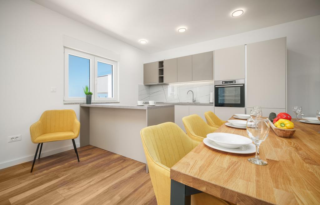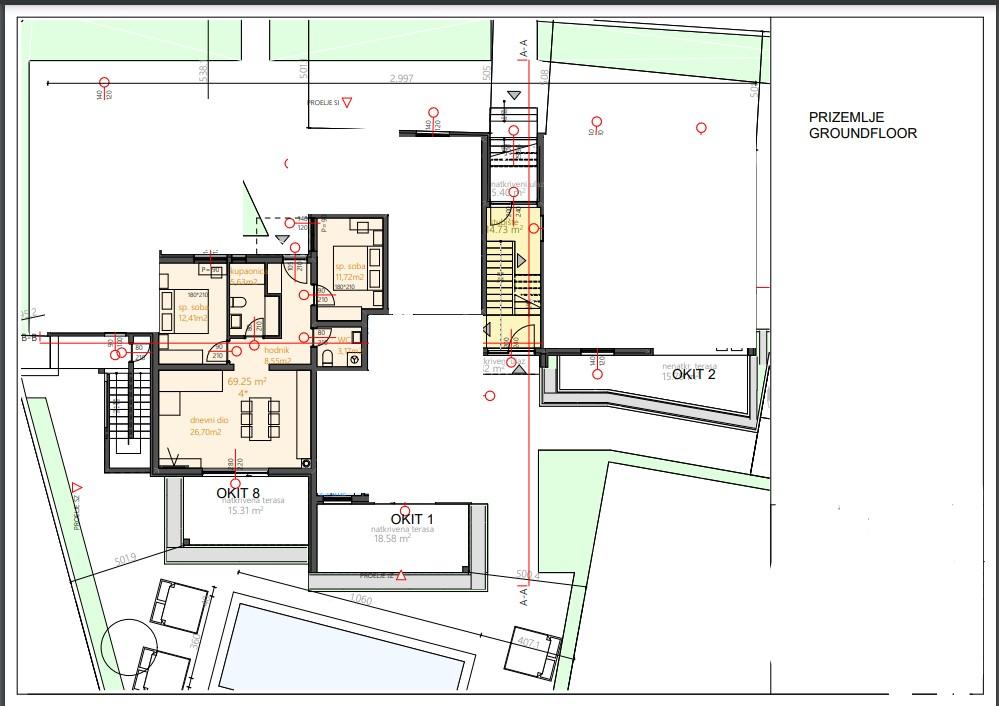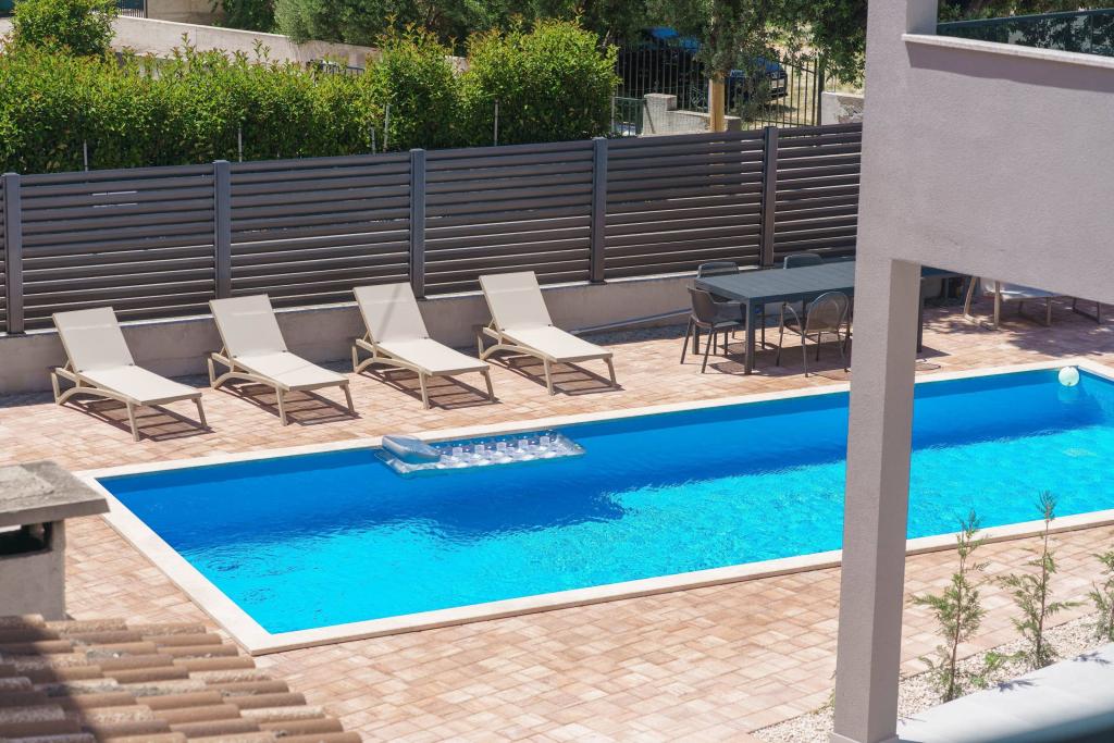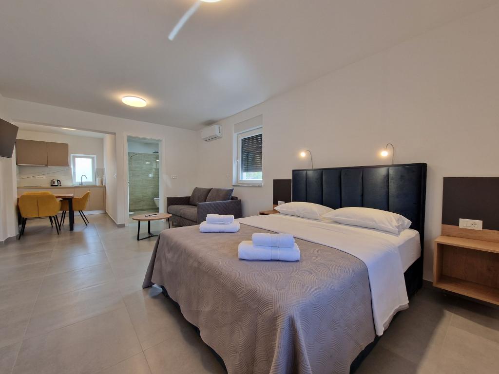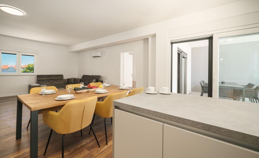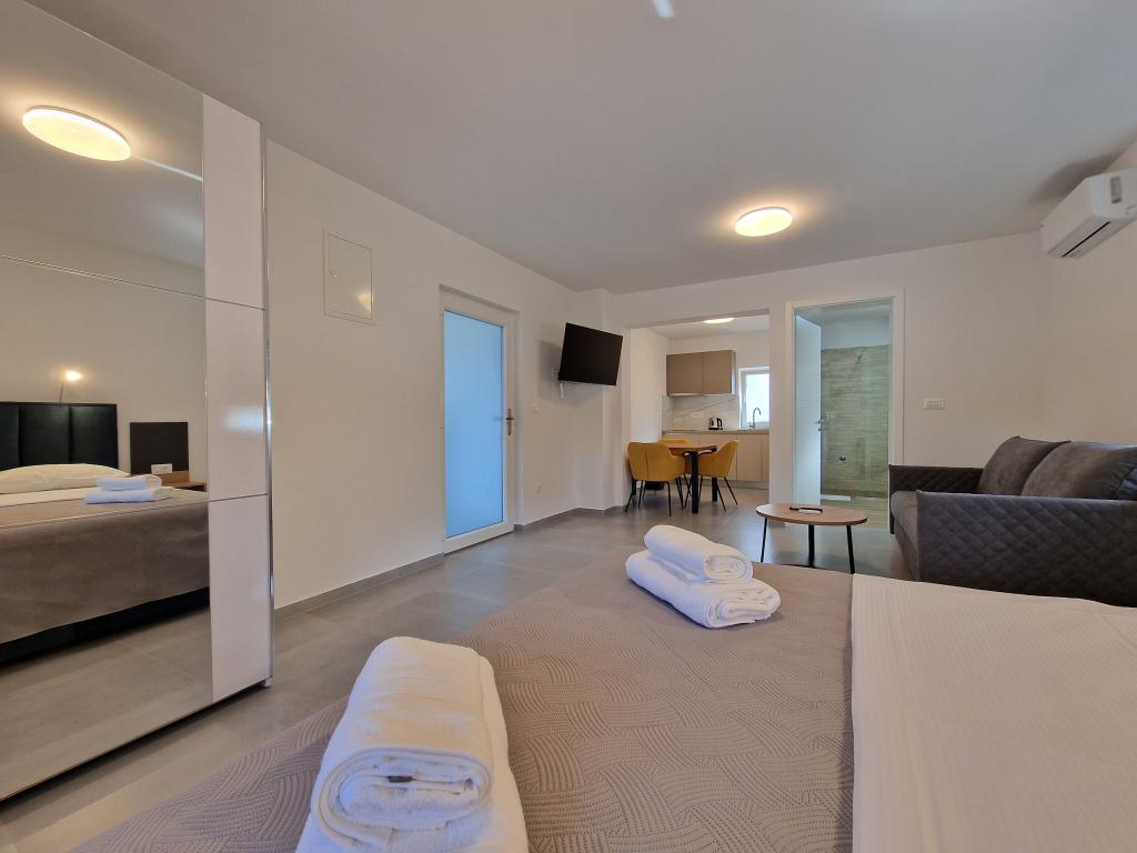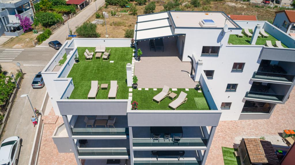 Apartvilla OKIT je nově postavený dům s venkovním bazénem a oploceným dvorem. Dům se nachází ve Vodicích (Srima), pouhých 150 m od pláže. Skládá se z 10 samostatných bytových jednotek/apartmánů, nabízíme jeden apartmán s 1 ložnicí, jednu garsonku, šest dvoupokojových apartmánů a dva apartmány se 3 ložnicemi, oplocený dvůr s parkováním a bazénem a prostorem na opalování.