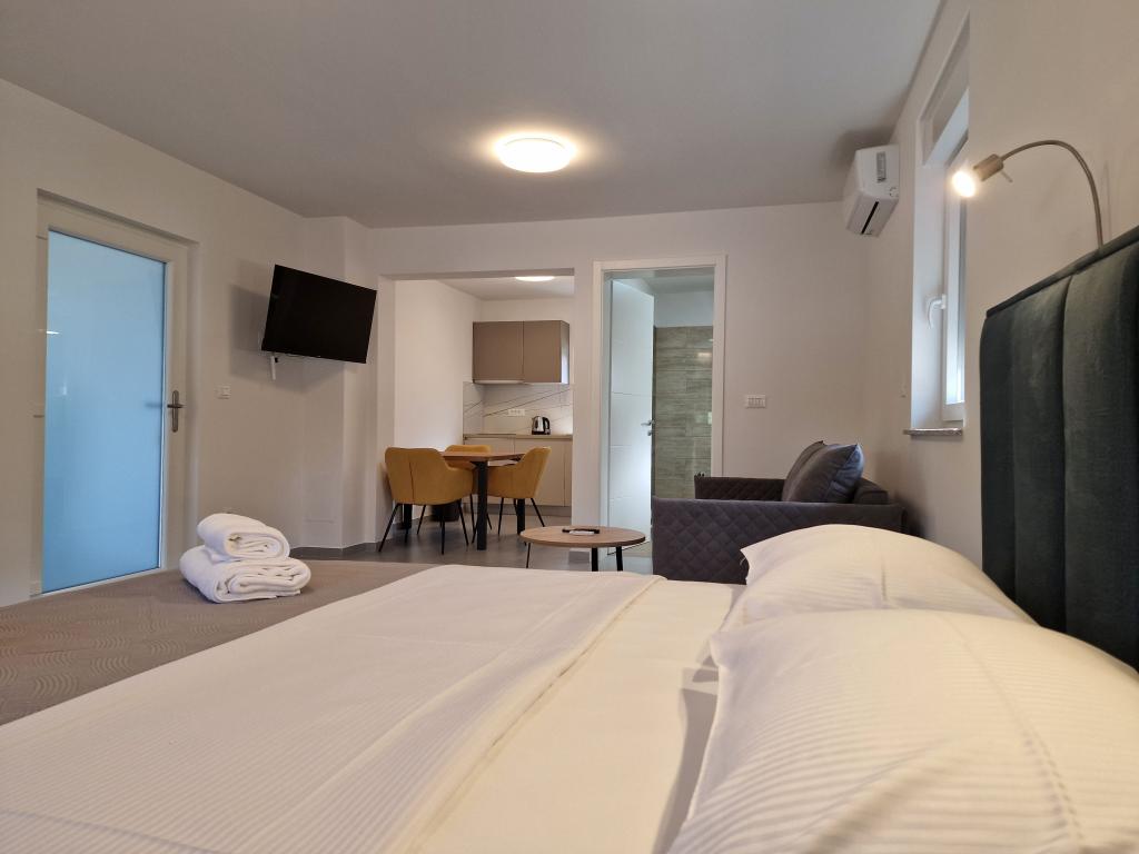 Cena zahrnuje pobytovou taxu, parkování, klimatizaci, ložní prádlo, použití bazénu, závěrečný úklid, internet.