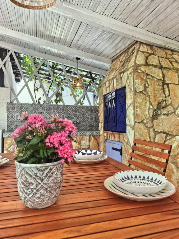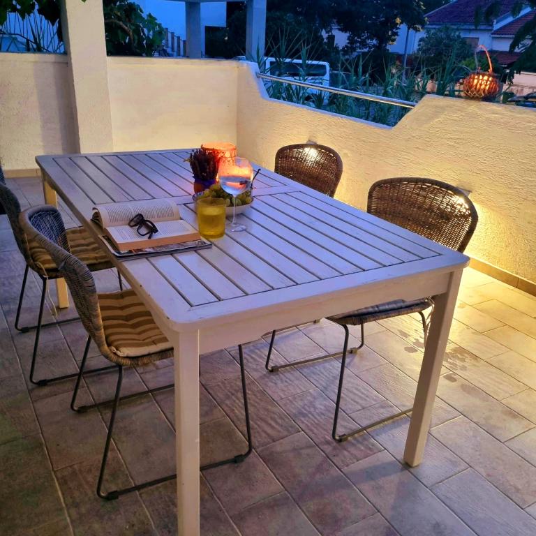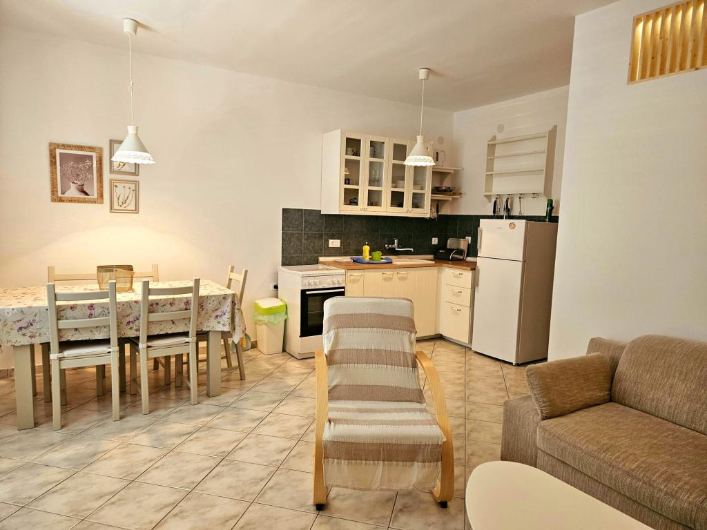 Atraktivní a funkční apartmány v klidné části města Stare Novalja, 5 min. pěšky na pláž! Každý apartmán má obývací pokoj, dvě ložnice, kuchyň, jídelnu, koupelnu a velkou terasu s výhledem na moře. K dispozici je také zahrada s parkovištěm před domem a velká kryté terasa s grilem a venkovní sprchou v zadní části budovy.