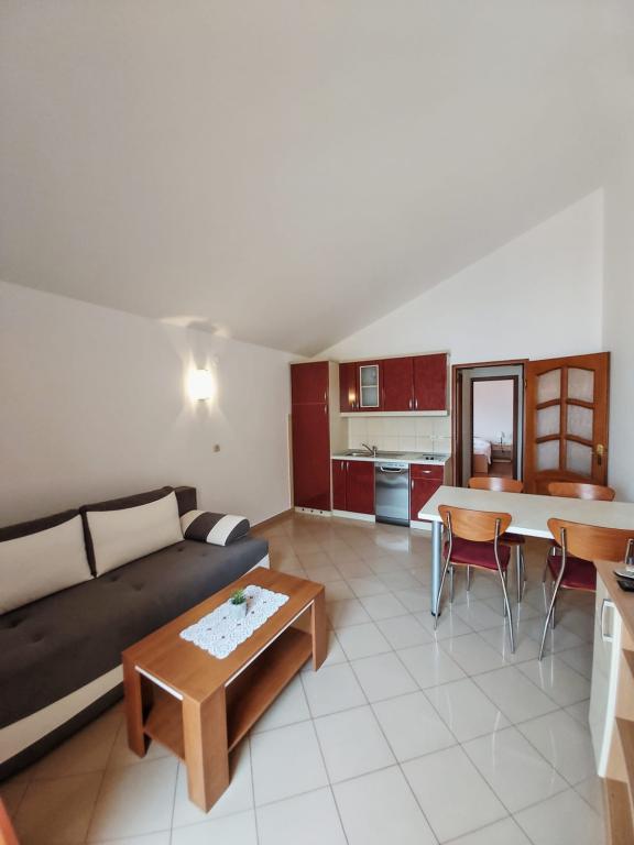 Apartmány 10 m od moře, klidná lokalita, ideální pro rodinnou dovolenou. Lehátka a slunečníky na pláži jsou zdarma. Možnost kotvení pro loď. V areálu je zajištěno kryté parkování.