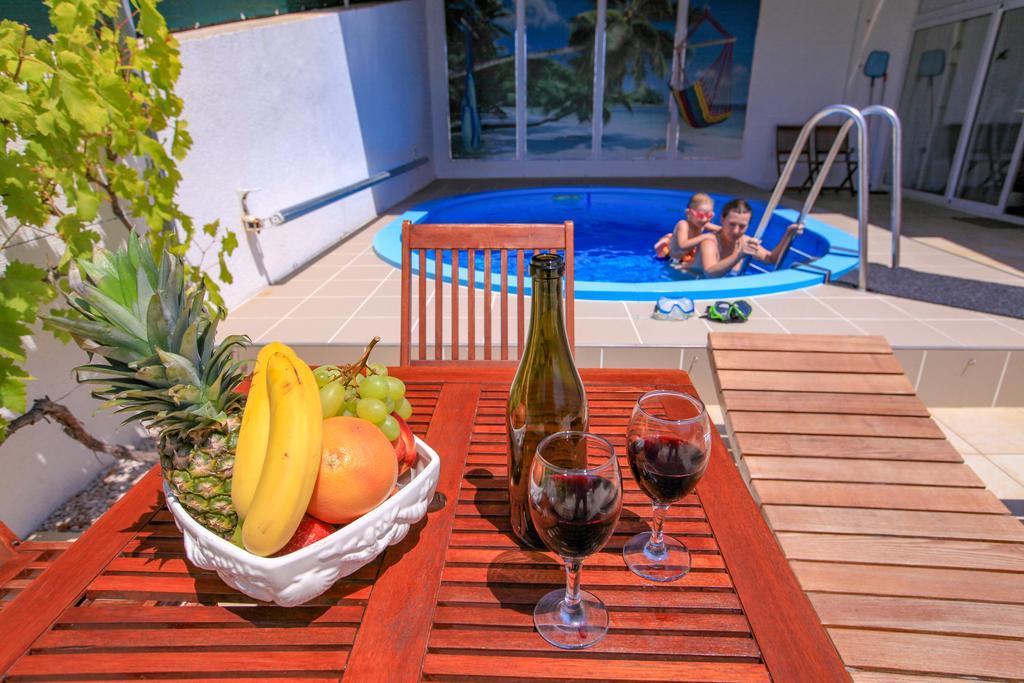 V areálu se nachází bazén s plochou na opalování a lehátky o rozměrech 3 x 4 metry, herna s kulečníkem, šipkami, stolním fotbalem a didaktickými hrami pro děti. Máme 7 jízdních kol a cvičební nářadí. Gril umístěný v domě je určen pro hosty ubytované v apartmánech. Každý host obdrží jeden z našich produktů při příjezdu na znamení přivítání. Máme loď 7 met. pokud si najdeme čas, můžeme zorganizovat exkurzi.