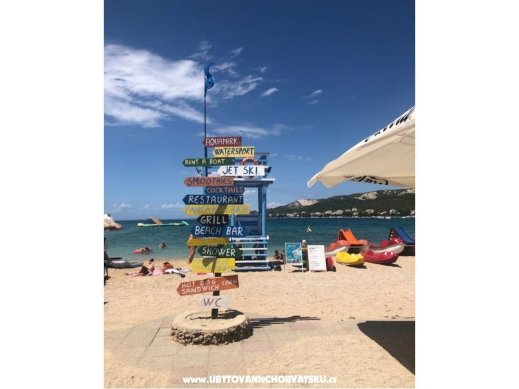 Apartmány se nacházejí v krásné zátoce Stara Novalja na ostrově Pag. Všechny apartmány mají terasu s výhledem na moře, satelitní TV a wifi internet. Apartmány 2+2 jsou vybaveny klimatizací, zatímco apartmán 6+2 má stropní ventilátory. Rodiny a malá domácí zvířata jsou vítána. Cena zahrnuje všechny daně, používání klimatizace, satelitní TV, parkování a ložní prádlo.