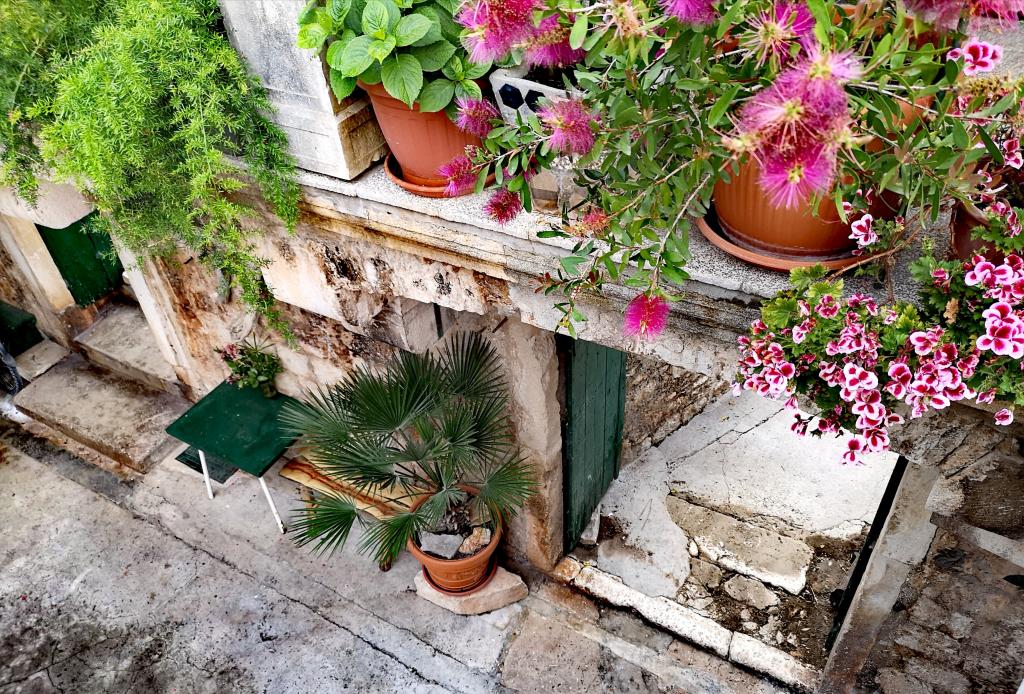 Byt v srdci Starého Města, který se nachází v malebné, klidné, slepé ulici. Jste obklopeni zelení, ticho, staré kamenné domy, panství a ptáci. Probudí vás vůně levandule a rozmarýnu, který roste buď divoce, nebo zasazený vedle samotného domu. Když opustíte ubytování, jste minutu chůze od úzkých kamenných uliček v samotném srdci místa, kde se odehrává veškerý život. Pokud chcete zažít, jaké to je bydlet na ostrově, v originálním kamenném domě, v klidu a přitom na krok od všech výhod městského prostředí – jste na správném místě! Jsme rádi a příští rok se určitě vrátíme. Myslím, že jsme našli naši malou letní oázu. Děkuji Tonća!