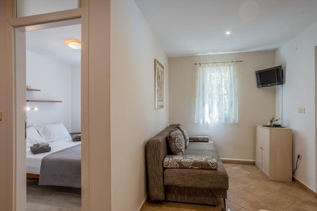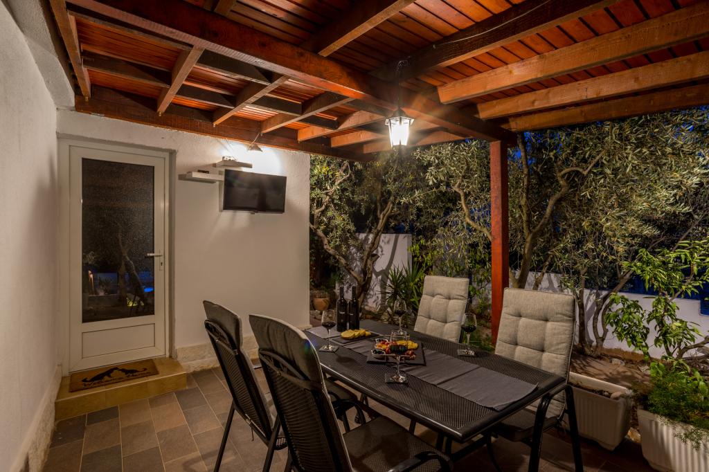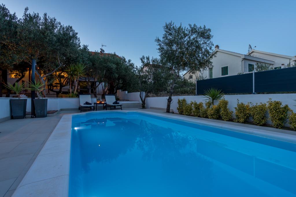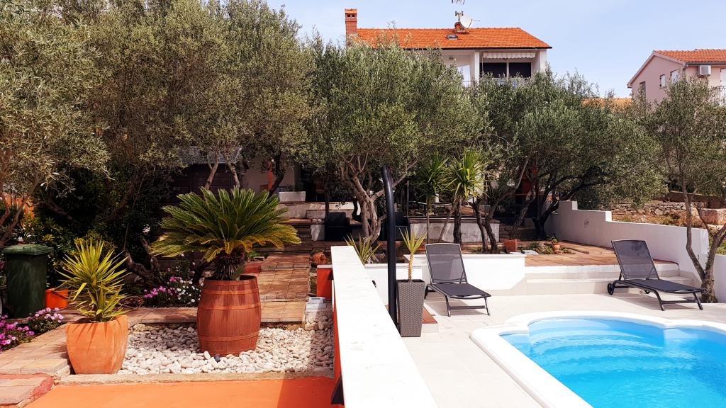 Klidný dům, který se nachází v rezidenční čtvrti Starého Města, pouhých 100 metrů od pláže a 300 m od centra města. Nabízíme plně vybavené apartmány, zahrada je 1100m2 velká, parkovací místo, gril. V blízkosti se nachází sportovní centrum (tenisové kurty, volejbalové hřiště, golfová hřiště, fotbal a basketbal, hotelové bazény, krásné pláže a restaurace. Rodinný dům Oliva 36 m2 se nachází na pozemku 500 m2 s vlastním parkovištěm, soukromým bazénem a oplocenou zahradou, je obklopen Skládá se z jedné dvoulůžkové ložnice, obývacího pokoje s přistýlkou pro dva s kuchyňkou a koupelnou se sprchou. Budova má krytou terasu o rozloze 30m2 se zahradním nábytkem, venkovním grilem a sprchou. Na zahradě je zahradní nábytek a Zařízení je klimatizované, vybavené LCD TV, hi-fi, moderní kuchyní / dvěma plynovými okruhy a troubou a myčkou. Je možné si pronajmout byt Tihana a dům Oliva ve společném zařízení s bazénem pro 10 osob.