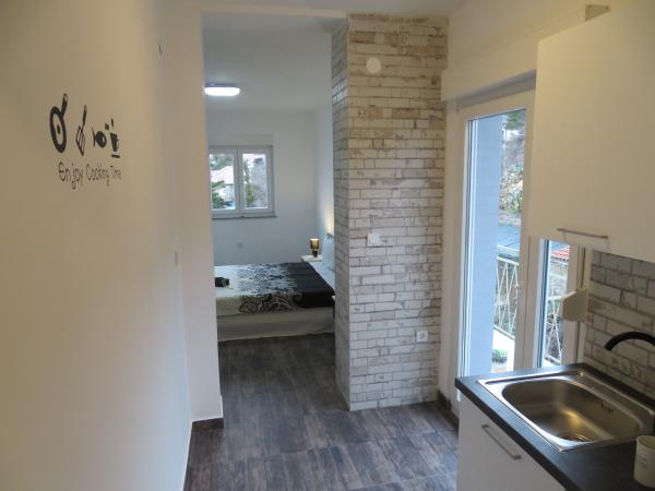 Nové byty, plně vybavené a moderní v oblasti pláže (30 m na moře), pouhých 200 metrů od centra. Dům s apartmány je celá renovovaný v roce 2018. Studio Byt je černá - bílá s balkonem. Byt 2 1 s balkonem a výhledem na moře v krásné bílé a hnědé tóny. Byt 4 1 je největší, má dva pokoje s velkými postelemi. Jeden pokoj je bílá - zlatá barva a druhá bílá a béžová nuancí. Celý byt s kuchyní a jídelnou má venkovní terasu se zahradním nábytkem. Nedaleko se nachází mnoho restaurací a obchodů. Starigrad Paklenica je ideální kombinace moře a horolezectví, protože národním parku Paklenica, který se nachází v těsné blízkosti (1700 m). Město Zadar je také poblíž každé návštěvě, Prohlídky, letu, chytání místní autobusové dopravy, se těší místní delikatesy a podobně.