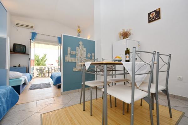 Samostatný rodinný dům s 5 obytnými zónami v klidné části Starigradu. V blízkosti moře a pláže, restaurace, hřiště, centrum. V blízkosti Národního parku. V areálu se nachází malá hospoda a grilování zdarma. Každý apartmán má vlastní terasu (balkon s výhledem na moře) a dva velké stoly ve dvoře.