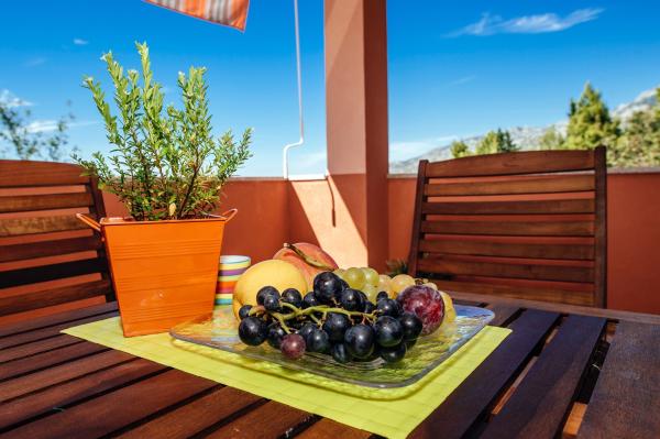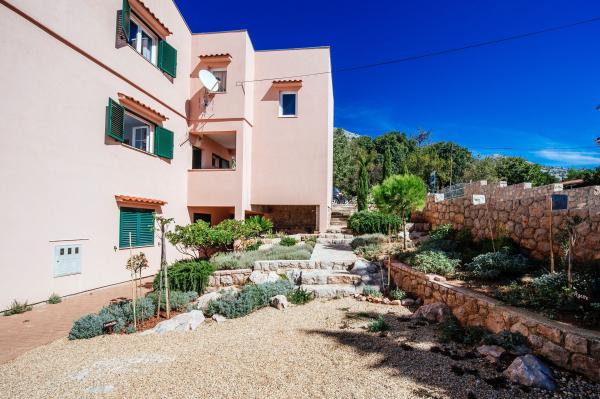 moderně vybavené apartmány s balkonem, dvěma ložnicemi a obývacím pokojem s kuchyní, výhledem na moře v klidné části Starigradu. 60 m od moře a 1,5 km od národního parku. Vzdálenost od centra 500 m. Parkování zajištěno ve dvoře.