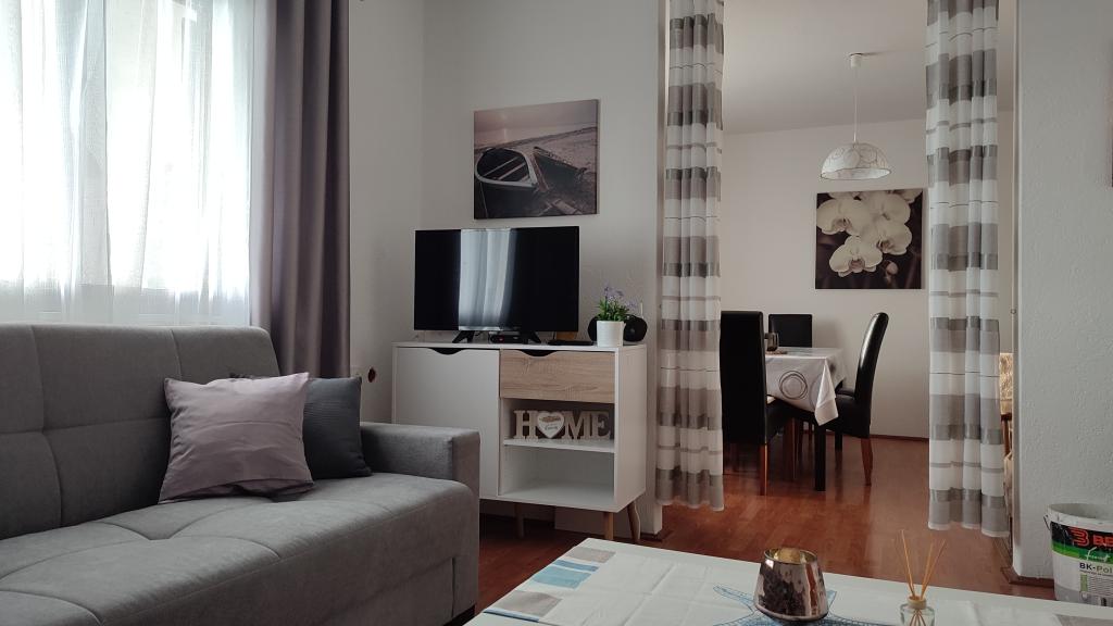 Rekreační dům Beli se nachází v oblasti Starigrad Paklenica - Tribanj, Običaj 33. Starigrad a národní park Paklenica, známý přírodní fenomén a turistické centrum, jsou 15 minut jízdy autem. Nabízíme 2 moderně vybavené dvoupokojové byty o velikosti 65 m2. Apartmány jsou klimatizované, mají Wi-Fi, satelitní TV, velké terasy s krásným výhledem na moře a ostrov Pag. Dům má velký oplocený dvůr, gril a bezplatné parkování pro auta ve dvoře. V zátoce přes silnici, 20 m od domu, je betonová pláž. V Tribnje a jeho okolí jsou dobře zásobené obchody, menší pláže a restaurace, které nabízejí gril a ryby, a rozmanitá nabídka ve Starigradu, asi 10 minut jízdy od domu. Dům má soukromí a klid, protože se nachází sám v zátoce v přirozeném autochtonním prostředí, je ideální pro rodinnou dovolenou. Apartmány jsou samostatné, každý má svůj vchod do obytného prostoru!!!! .