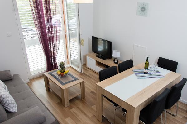 Byt Gale je zcela nový byt (52 m2), v blízkosti města Split a turistickém městečku Stobreč. Vzdálenost od centra Splitu je vzdáleno 8 km. V blízkosti je řeka Žrnovnica. Kromě řeky se nachází golfové hřiště a pěší stezky. Nejbližší pláž se nachází ve městě Stobrec a je 1400 m. Byt se skládá z obývacího pokoje, jídelna, kuchyň, koupelna, 2 ložnice a terasa. Bezplatné parkování je zajištěno u apartmánů. V bytě je klimatizované (klimatizace je v ceně) a má Wi-Fi (zdarma). Kuchyně je plně vybavená (lednice, sporák, trouba, rychlovarná konvice). V jídelně je stůl s 5 židlemi. V obývacím pokoji je TV s pozemními a satelitním příjmem (Astra a Hotbird) a rozkládací pohovkou s plochou obrazovkou. V jedné místnosti je manželská postel, dva noční stolky a posuvné skříň v jiné místnosti jsou dva samostatné lůžko, noční stolek a posuvný skříň. Na terase je stůl se 4 židlemi a slunečníkem.