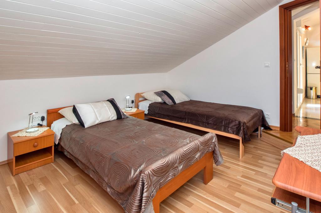 Apartmán Iskra se nachází v soukromém domě v malé vesničce Stobrec nedaleko Splitu. Vzdálenost od Splitu je 15 minut jízdy do centra města. Stobreč je malé klidné místo se všemi dostupnými zařízeními pro příjemnou dovolenou. Byt se nachází 10 minut chůze od pláže a stejný od centra. Za 5 minut dojdete k malému obchodu. , a větší obchody se nacházejí v centru, což je asi 10 minut od bytu. Apartmán má soukromé parkoviště pro jedno auto a je zdarma. Byt je plně moderně vybaven pro pohodlný a kvalitní pobyt a má krásnou terasu s výhledem na moře a ostrovy před Stobrecem. Byt se nachází ve třetím patře a nemá výtah, tj. V podkroví soukromého domu. Do centra Splitu vede také autobus, takže není třeba vůbec používat auto. V centru Stobreku jsou kavárny, restaurace, turistická kancelář, pošta, bankomaty, lékárna a lékař. Existují tenisové kurty, potápěčský a jezdecký klub a golfové hřiště. .