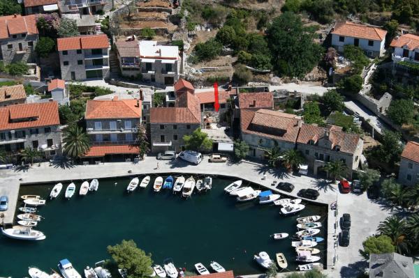 Cítit duch staré dalmatské rybářské vesnice v bytě se nachází na malebném nábřeží. Vše, co potřebujete začít svůj den, z pekáren a obchodů barů a restaurací, se nachází v blízkosti apartmánů. Na nádvoří, zdobené v dalmatském stylu, je krb, který je k dispozici, a máte možnost vychutnat si výhled na záliv z horní terasy. Krásné pláže jsou jen kousek odtud.