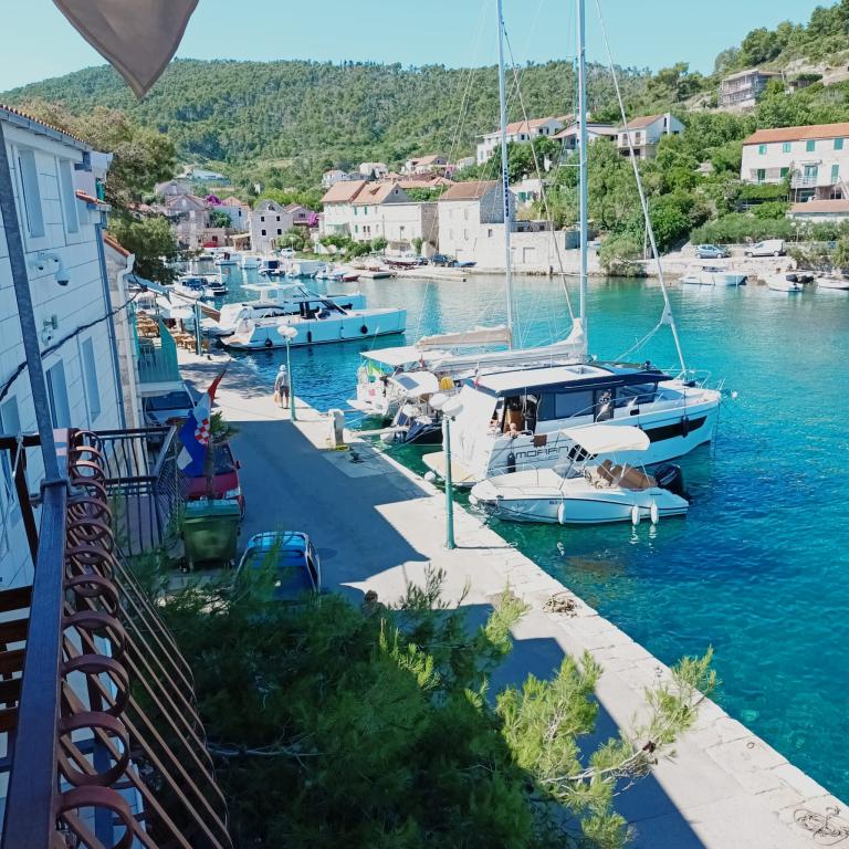 Velké hostitelé, krásné a příjemné místo s výhledem na moře. Čistí a upravení. Mnohem hezčí než uvedené fotografii. Skvělé restaurace v okolí. Stomorska je krásná vesnička u moře Děkuji za všechno. Uvidíme se zase příští rok.