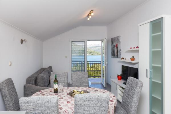 Apartmány se nacházejí v rodinném domě v obci u moře malou vesnici, která je součástí obce Hodilje na pobřeží Mali Ston Bay. Místo je daleko od historického města Ston 3 km a všechny krátkou procházku k moři. Apartmány se skládají z ložnice, koupelny a kuchyně. Apartmán 1 má také obývací pokoj s pohovkou s možností síly. Všechny pokoje mají manželskou postel, zatímco v bytě 2 je jedna přistýlka pro jednu osobu. Z balkonu 01:02 krásný výhled na záliv Mali Ston, ústřic a mušlí.