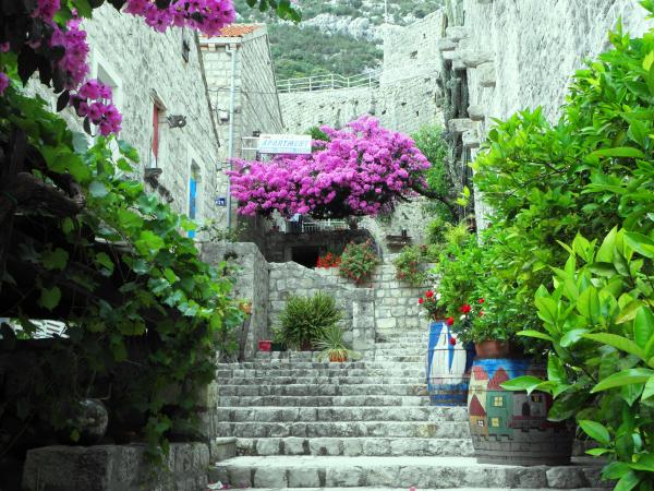 Náš dům se nachází ve staré části města Ston, přesněji ve středu, pod městskými hradbami. Byt se nachází nad hlavním vchodem domu, s vlastním samostatným vchodem. V přední části domu je terasa pro hosty, a zahrada s místní zeleninou, které jsou zdarma k našim hostům. Výhled z apartmánů je zaměřena na moře a staré město. V blízkosti zařízení: • ATM • banka • Mail • Lékař • Lékárna • Bus • Ferry • Port Papratno • Čerpací stanice • Pizzeria • Restaurace • Supermarket • Hřiště • Plážový • Centrum města Byt se skládá z: • Pokoje s manželskou postelí + přistýlka pro 1 osobu • plně vybavená kuchyň. • Pracovní stůl • Křesla • Krytá terasa • Koupelna • Terasa • Air • SAT-TV • Internet
