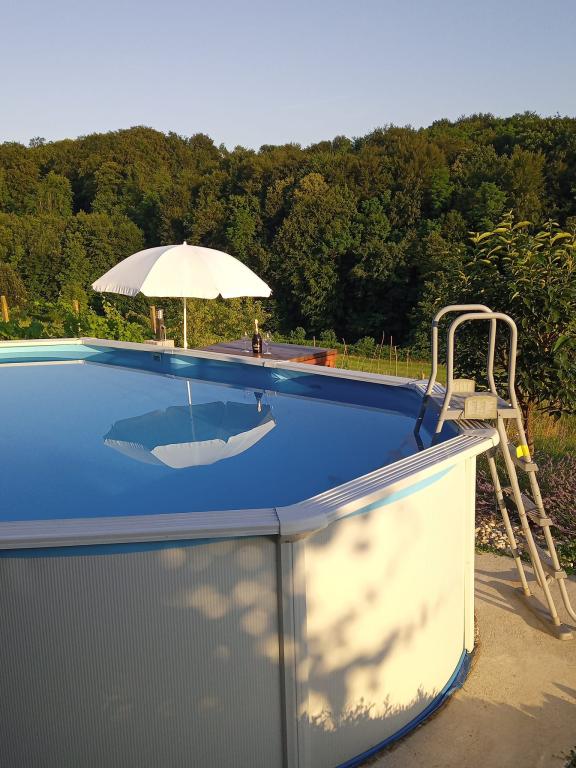 V oáze klidu a pohody a 100% zeleně, s vůní rostlin, v Grabrovnik 139, Apartment Arena se nachází v prvním patře rodinného domu s 2 ložnicemi x 2, obývacím pokojem. pokoj a koupelna. K užívání mu náleží venkovní jižní terasa 60 m2. s nábytkem na sezení, opalování, grilování a nechybí ani montovaný bazén 610x360x120 cm. Koupání, plavání nebo opalování v bazénu, u bazénu máte stůl se slunečníkem. Pohled na louku a les vás zastihne srnky, klasy trávy v mnoha odstínech zelené. Na zahradě je i ohniště, sejděte se a zapalte oheň a opečte si klobásy nebo nějakou svou pochoutku na špejli. Pro outdoorové aktivity jsme pro Vás navrhli letní kuchyňku s dřezem a teplou vodou, pračku a spotřebiče, které poslouží pro Váš pobyt venku či přípravu jídla. Nedaleko jsou lázně sv. Martin, farma Jelena, vyhlídka Mađerka, skotská farma, sportovní a rekreační středisko v přírodě, 25. vinařství se špičkovými víny, Zmajev vrt, a nabídka zeleniny v tuzemském OP.