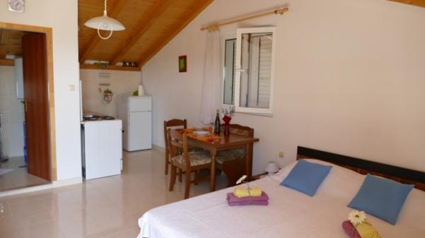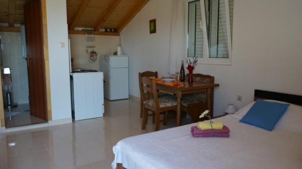 Ideální místo jak pro dovolenou s dětmi, pro starší lidi a i pro mladé páry. Byli jsme ubytovaní ve Studio apartmánu, nádherná terasa s výhledem na moře, vlastní přístup (schodiště) z parkoviště. Paní majitelka s manželem jsou velmi příjemní, kdykoliv jsme něco potřebovali, ihned to řešili. Paní Rolanda pekla výborné buchty, dala nám ochutnat domácí sušené i čerstvé fíky, umí sice jen chorvatsky, ale spousta slov je stejných jako v češtině, takže s domluvou nebyl problém. Zahradu měli krásnou, nám se tam moc líbilo. Apartmány jsou v klidné lokalitě, dům je v podstatě osamocený, přesto je to na pláž kousíček, ani ne 100m, oficiální pláž – ta je kousek dál, asi 200-300m. Do města je to také kousek, asi 5-10 min chůze přímo na náměstí, podél přístavu je několik restaurací a 3 obchody, např. chleba se dá koupit prakticky vždycky čerstvý. Byli jsme velmi spokojení!