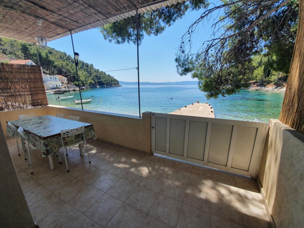 Dům Sandra se nachází v klidné zátoce Pelinovik, v obci Bogomolje. Bogomolje se nachází 15 km západně od Sućuraje. Záliv Pelinovik je asi 3 km od Bogomolje. Dům v zátoce se nachází na pláži. Dům má dvě patra a má celkem 70 m2. V prvním patře je kuchyň a obývací pokoj, zatímco ve druhém patře jsou tři dvoulůžkové pokoje a koupelna. V zadní části domu je komín. Parkování je zajištěno! Zátoka nemá elektřinu a vodu, takže používáme alternativní zdroje energie. Elektrická energie je získávána pomocí solárních panelů (výkon 12V). Má možnost nabíjení mobilních telefonů a dalších 220 V zařízení, ale musí být používán omezeným způsobem, aby nedošlo k vyčerpání systému a vyčerpání energie. Voda je dešťová voda a je k dispozici v celém domě a máme horkou vodu.